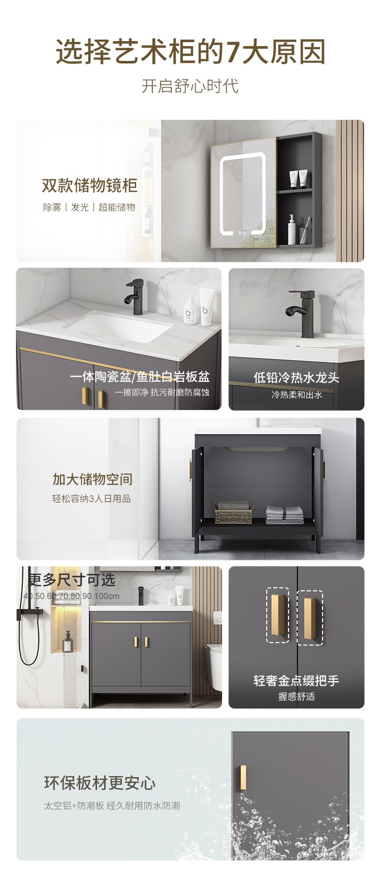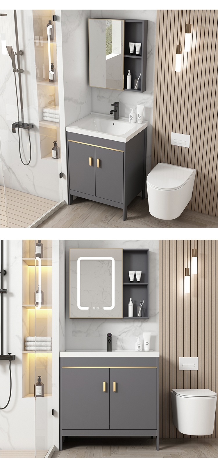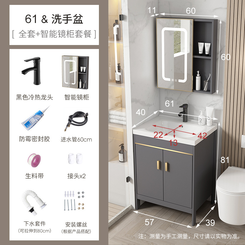 바닥 형 공간 알루미늄 욕실 캐비닛 세척 분지 세척 분지 캐비닛 조합 세라믹 욕실 발코니 세척 테이블 분지