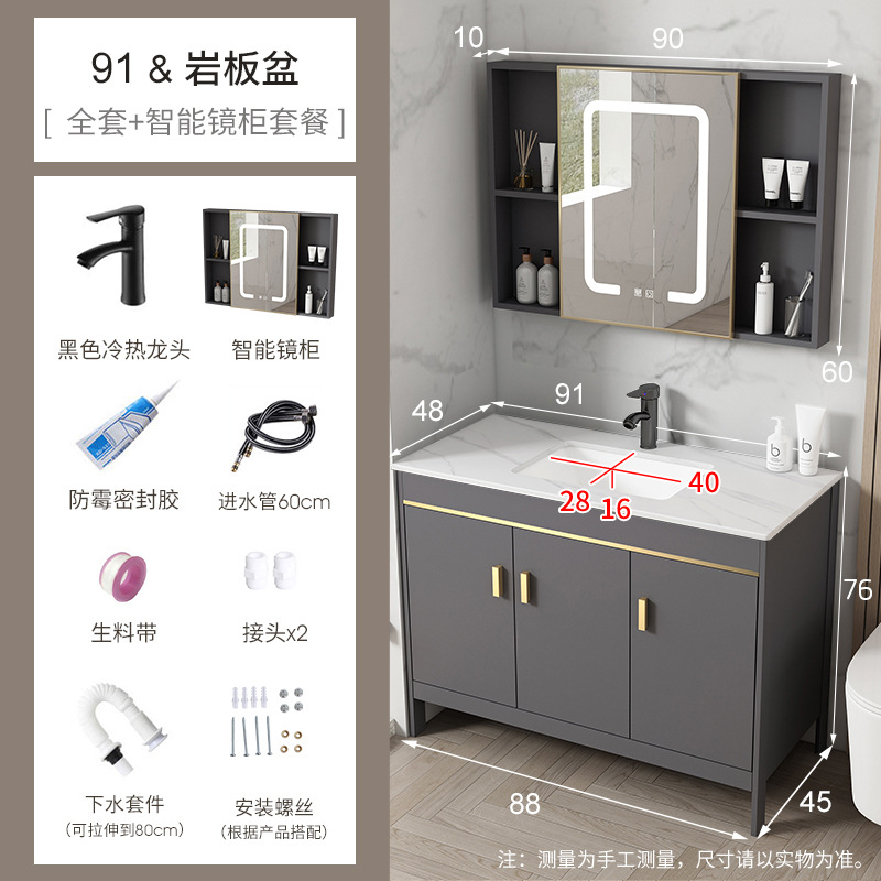 • 슬레이트 세면대 90 그레이 골드 완전 밀봉 플로어 스탠딩 + 스마트 거울 캐비닛