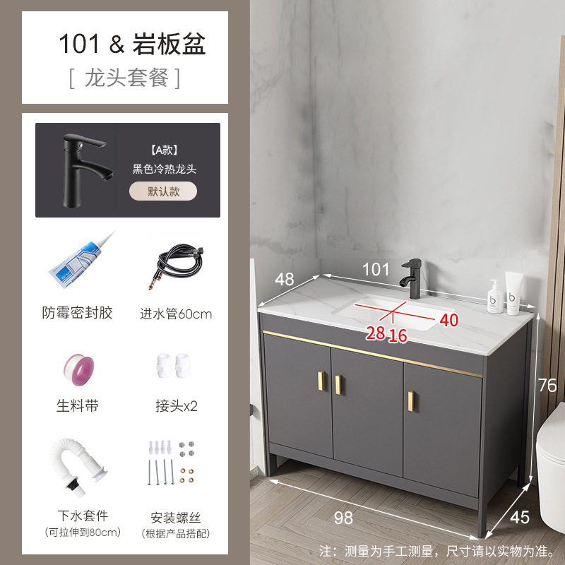 • 슬레이트 세면대 1m 그레이 골드 완전 밀폐형 바닥 + 거울 캐비닛