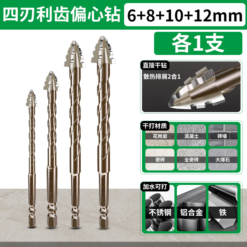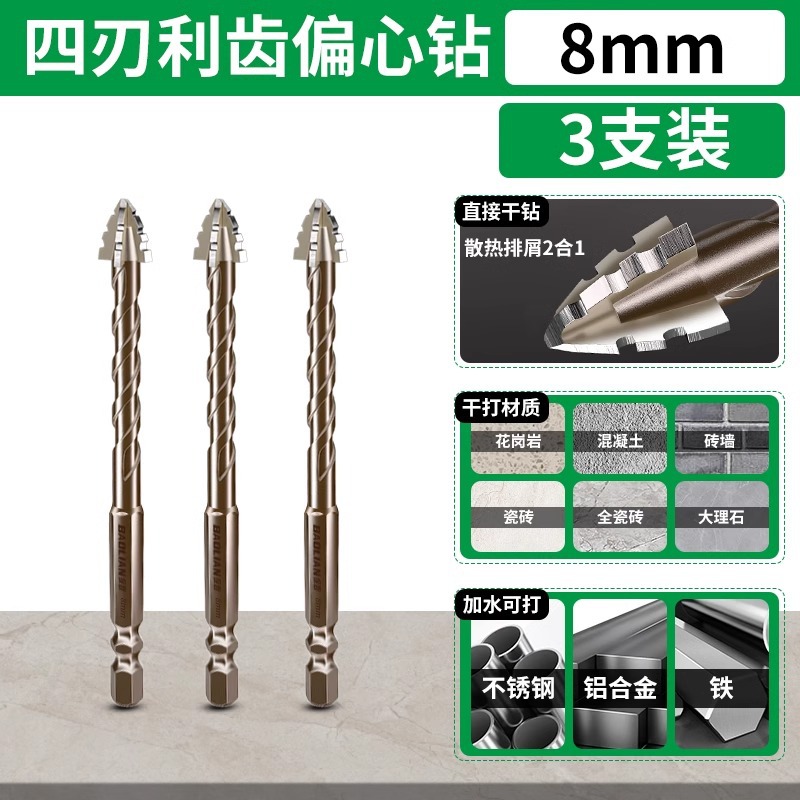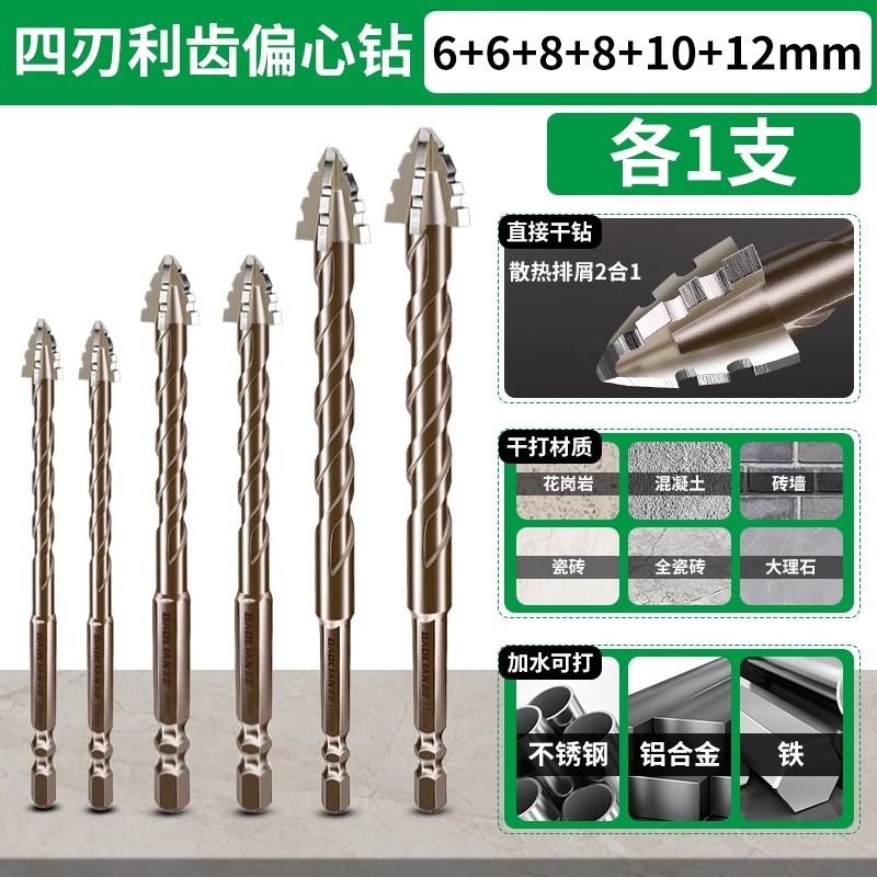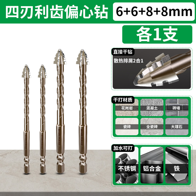Baolian 4 날 톱니 모양의 편심 드릴링 풀 타일 주철 콘크리트 육각형 드릴링 드릴 비트 건식 드릴링 아티팩트스토어 가기