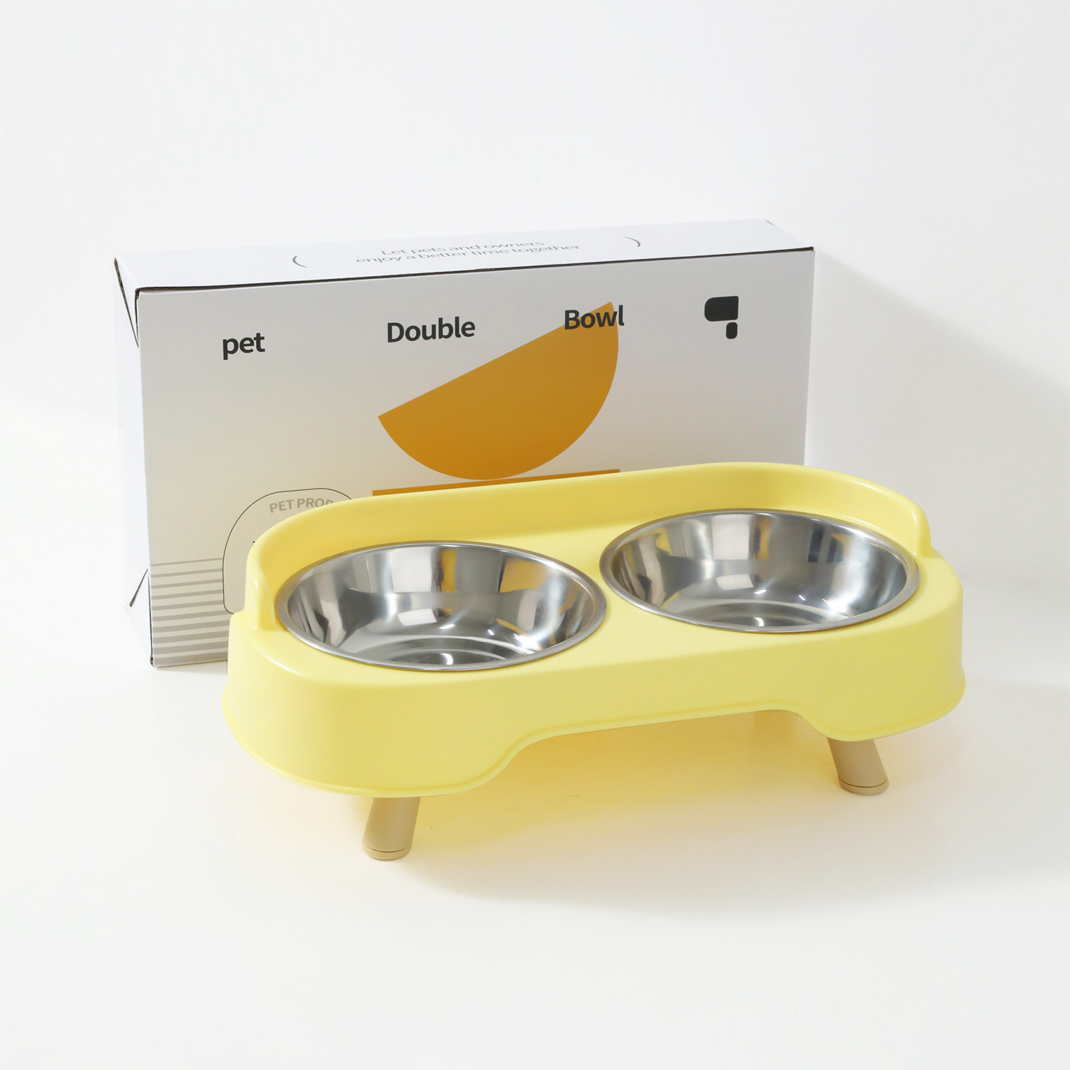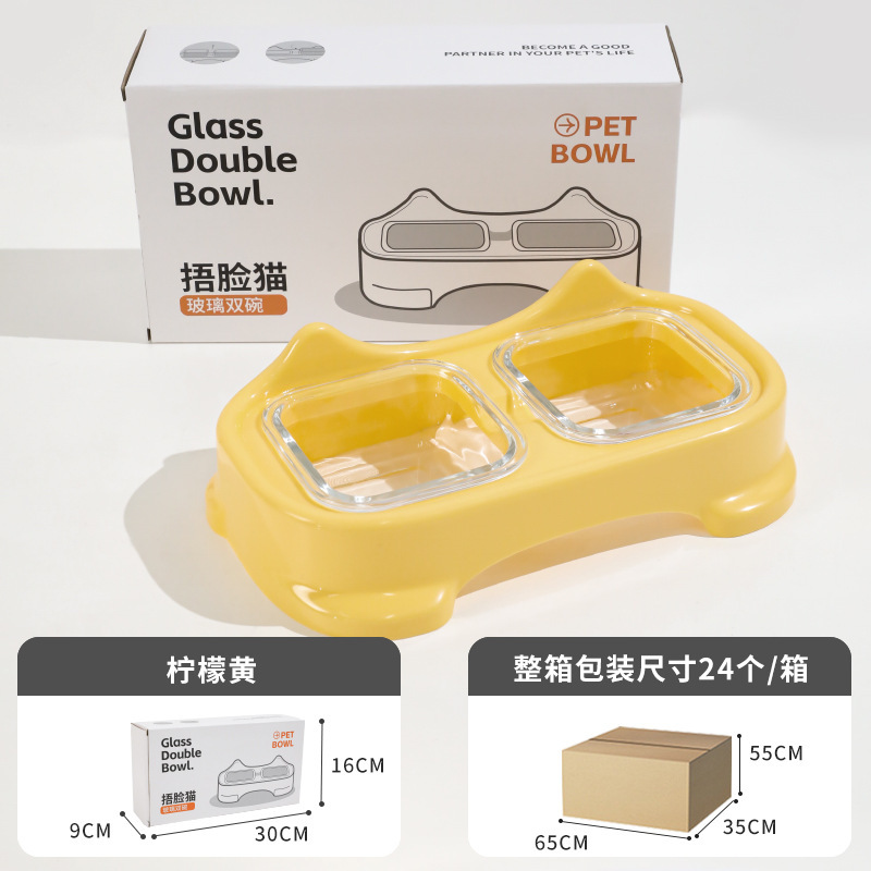 • 얼굴을 가리는 고양이 유리 이중 그릇 - 레몬 옐로우