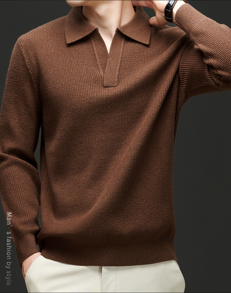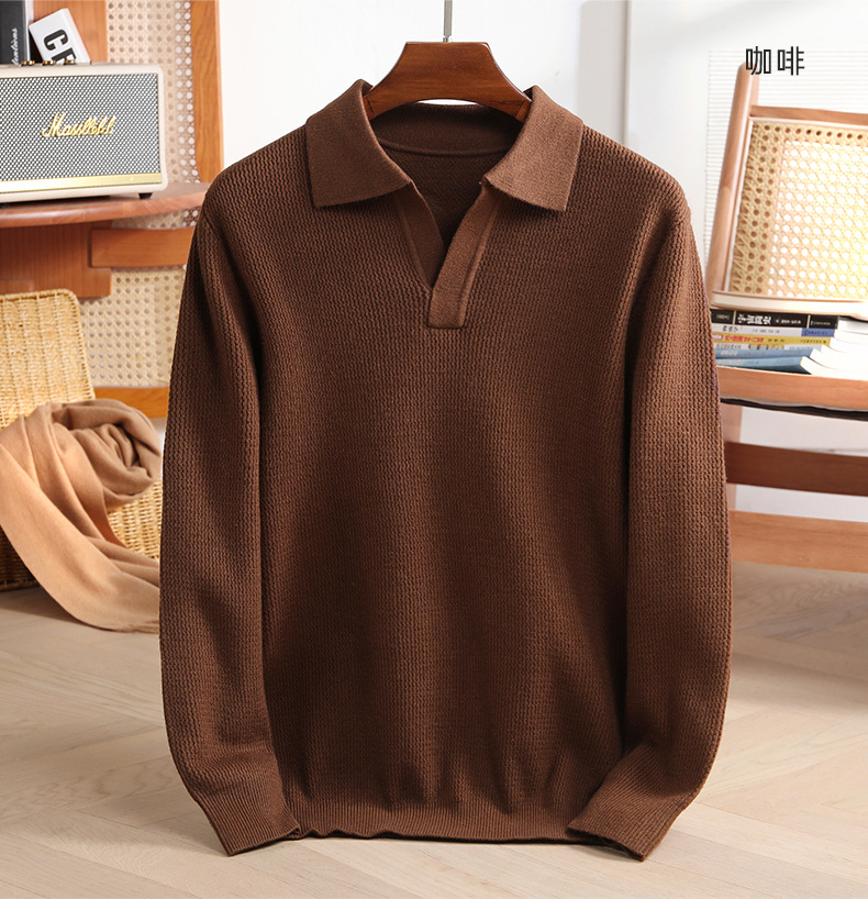 V-Neck 스웨터 남자 가을과 겨울 한국 스타일 주니어 니트 베이스 탑 틈새 하이 엔드 루즈 폴로 탑
