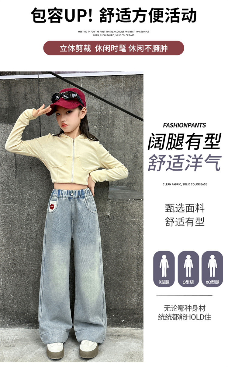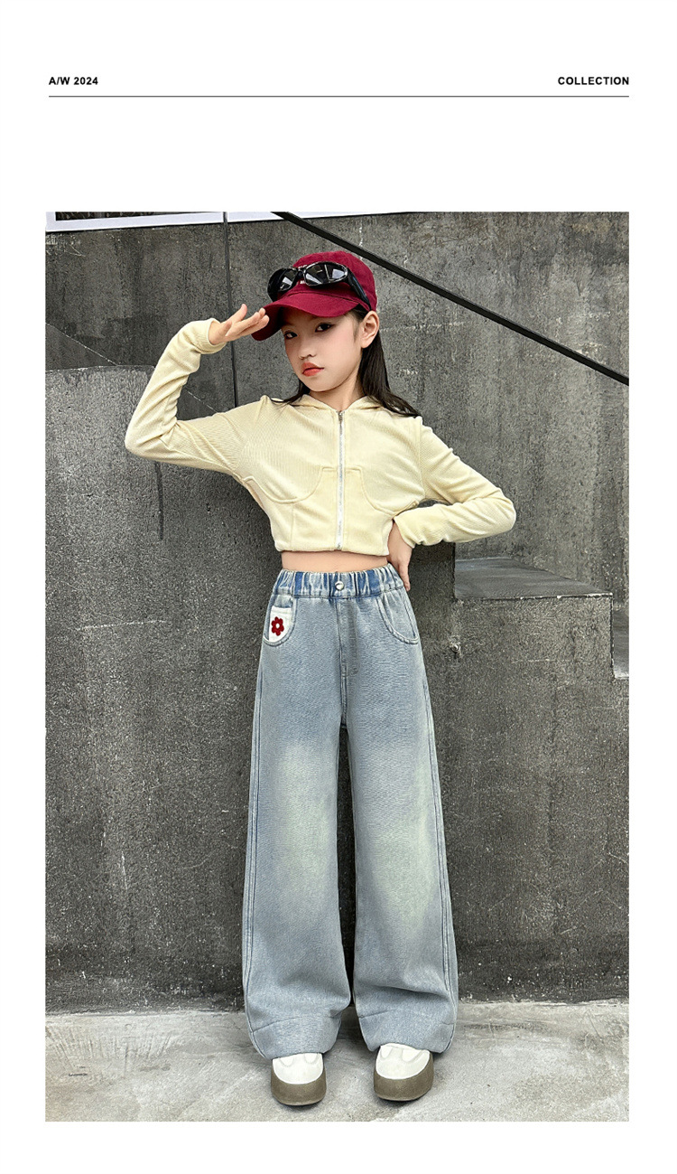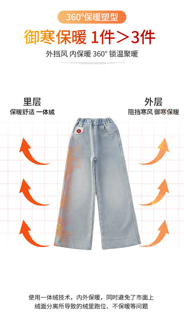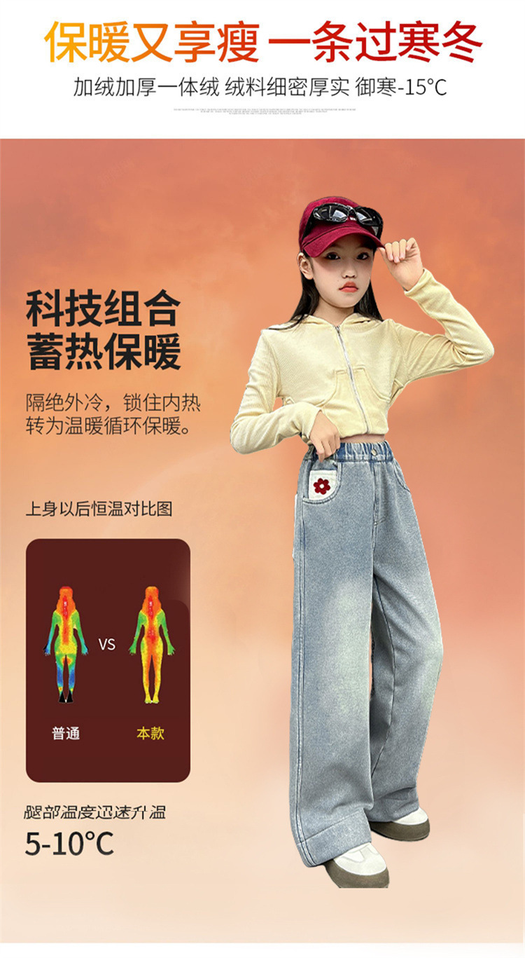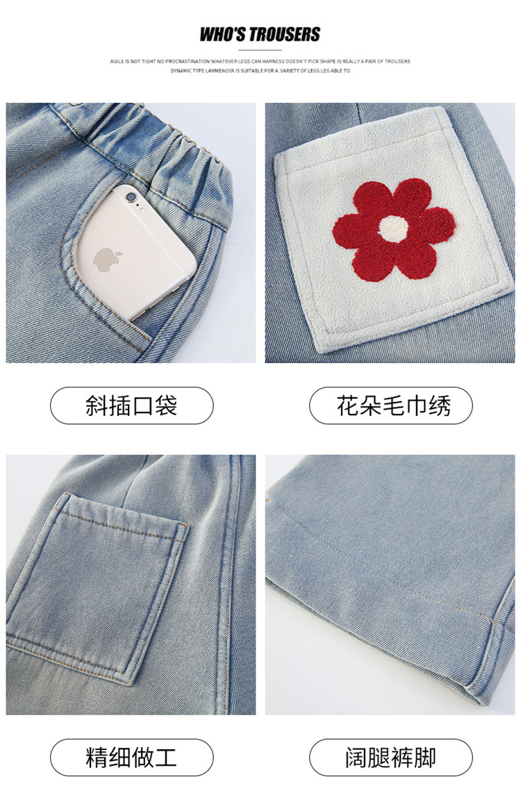 소녀 청바지 가을 겨울 바지 기모 두꺼운 어린이 서양식 겨울 느슨한 따뜻한 넓은 다리 바지