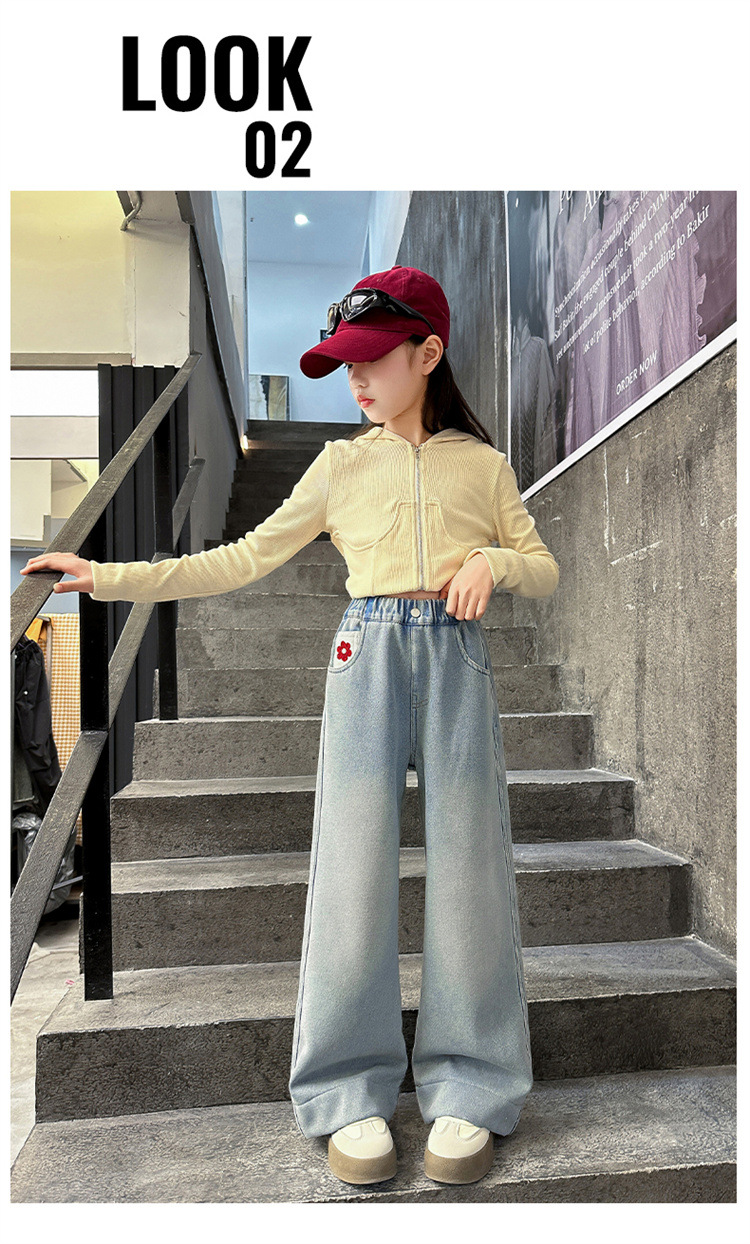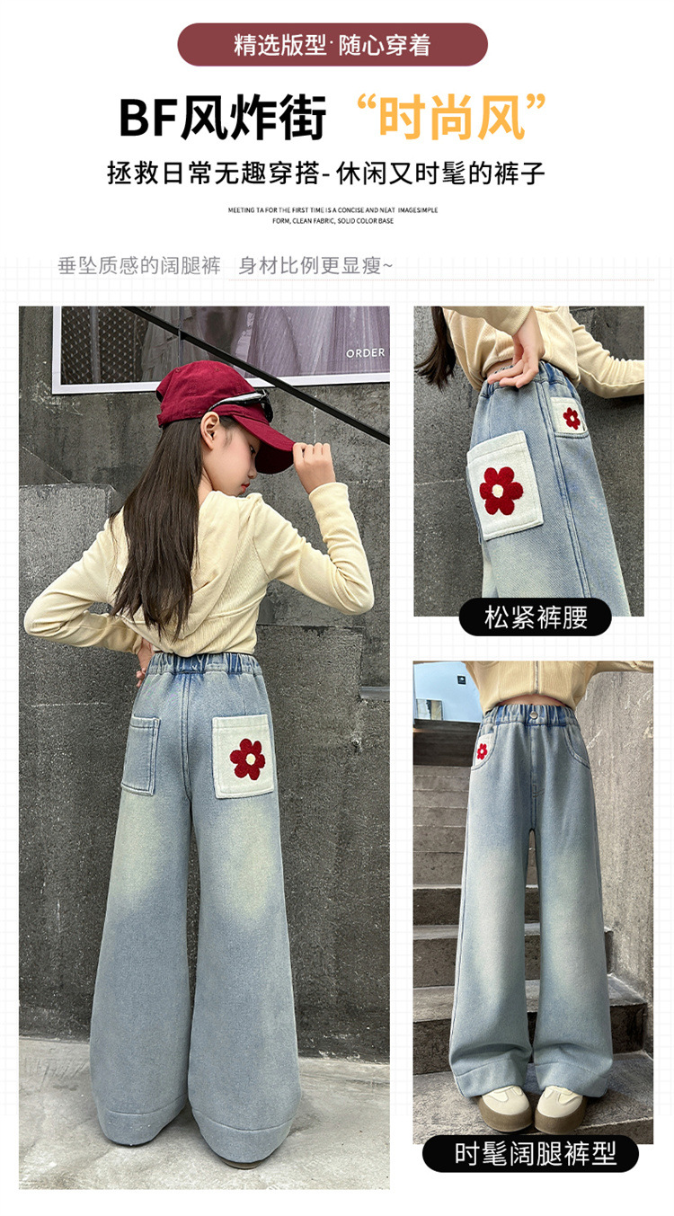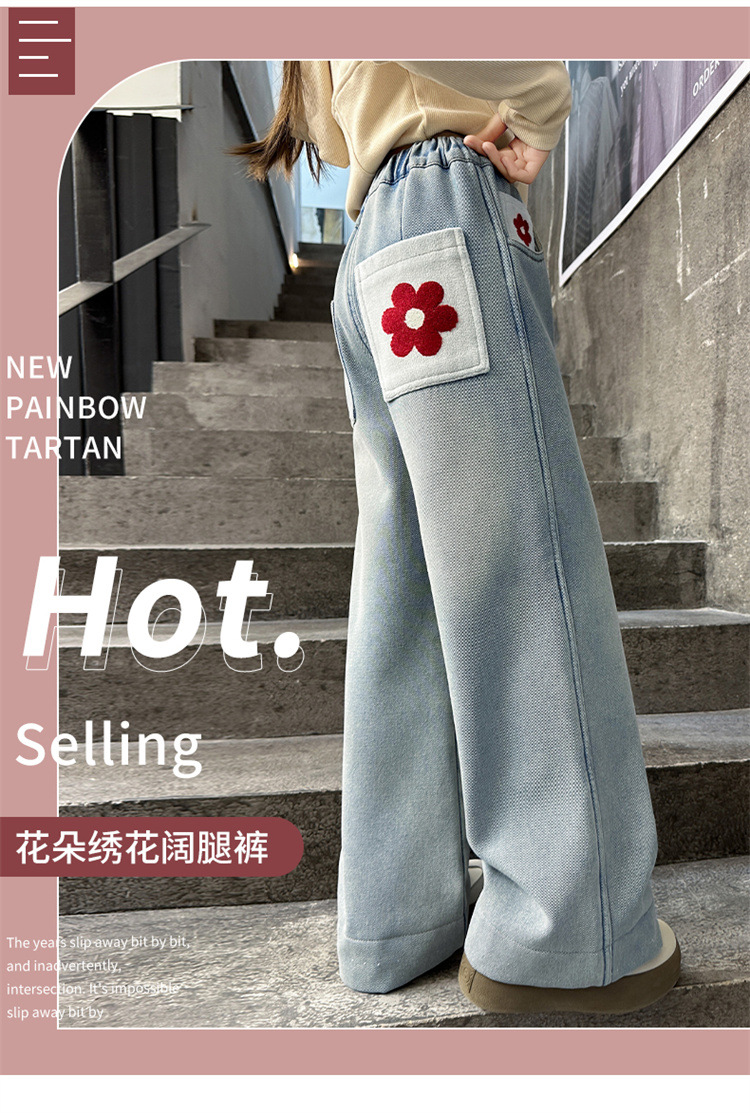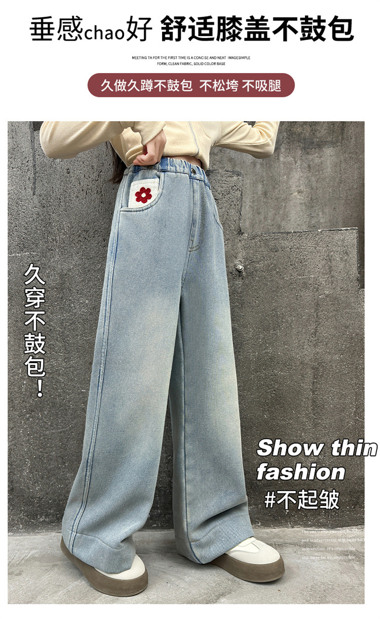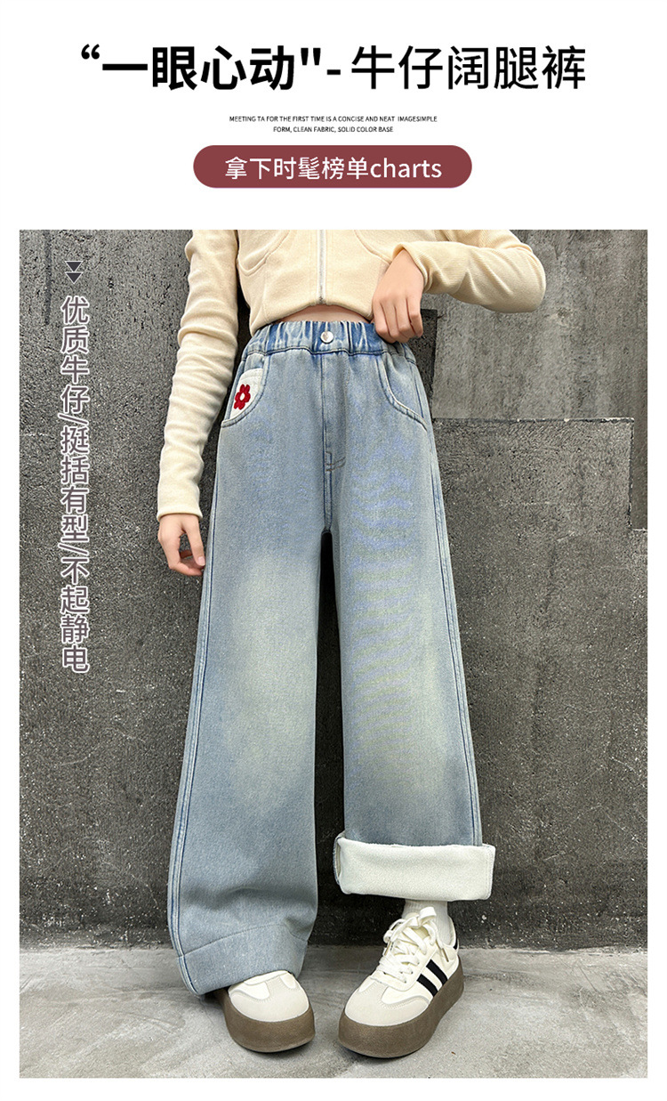 소녀 청바지 가을 겨울 바지 기모 두꺼운 어린이 서양식 겨울 느슨한 따뜻한 넓은 다리 바지스토어 가기