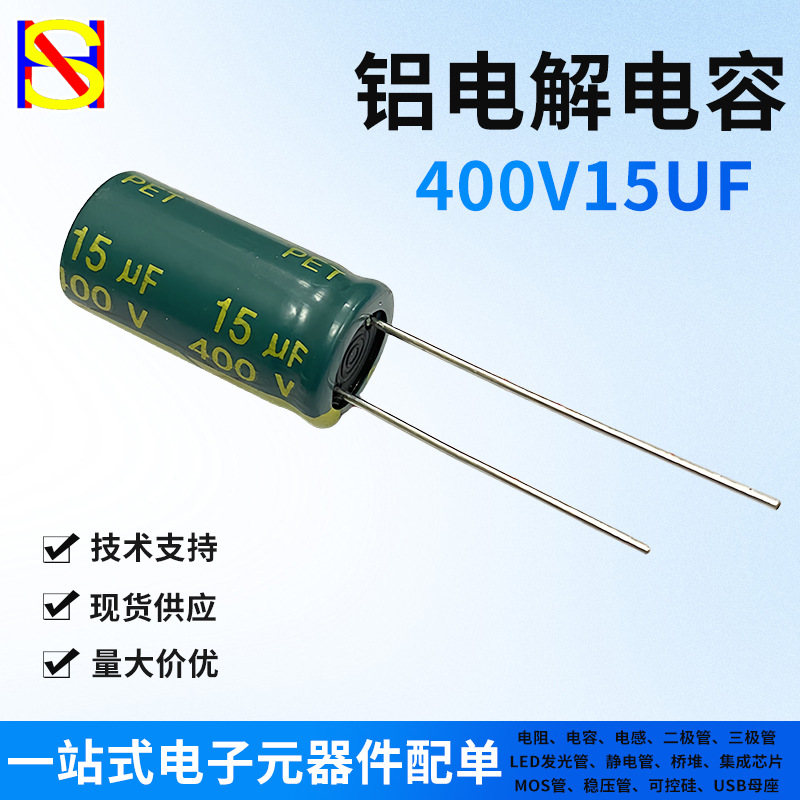 一站式电子元器件BOM配单400V15UF 8X16mm 直插件铝电解电容器/编排带/剪切短脚/定型/高频