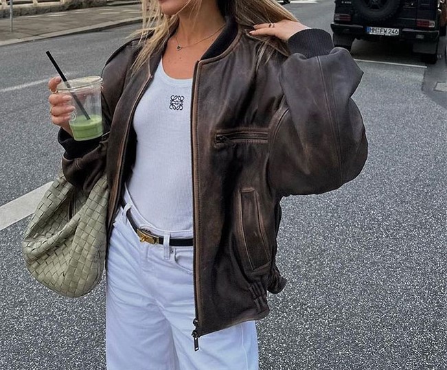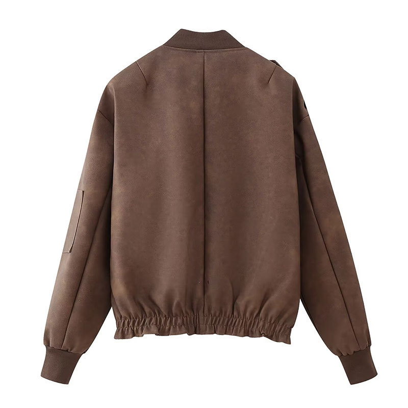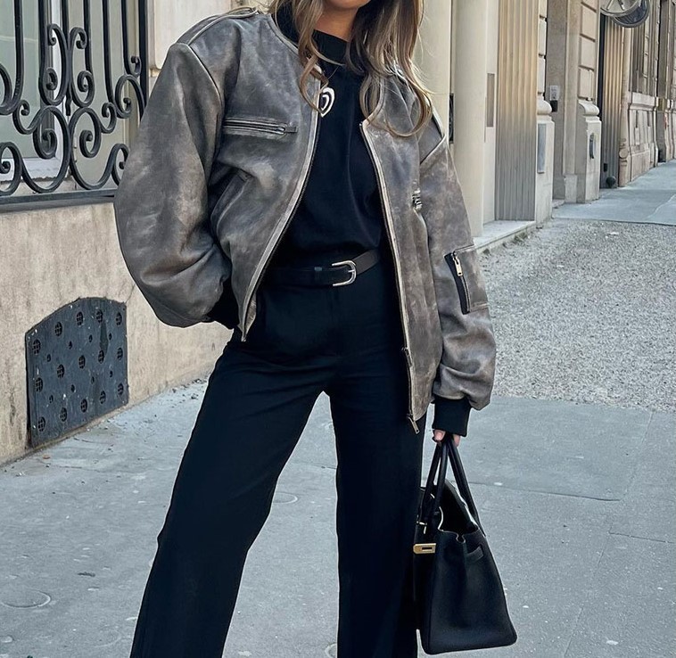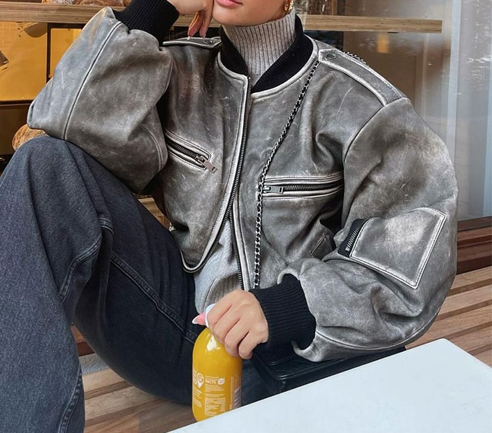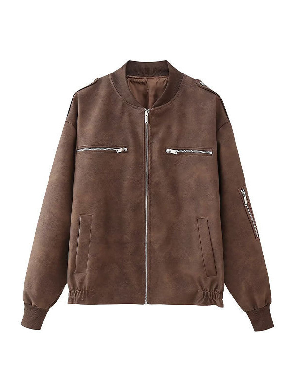 지퍼 Distressed Aviator Jacket Coat 2024 유럽 및 미국 국경 패션 여성의 긴팔 독특한 스트리트 재킷스토어 가기