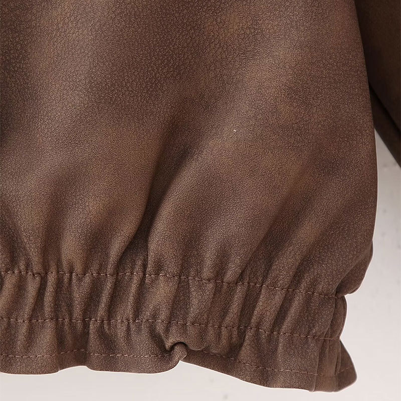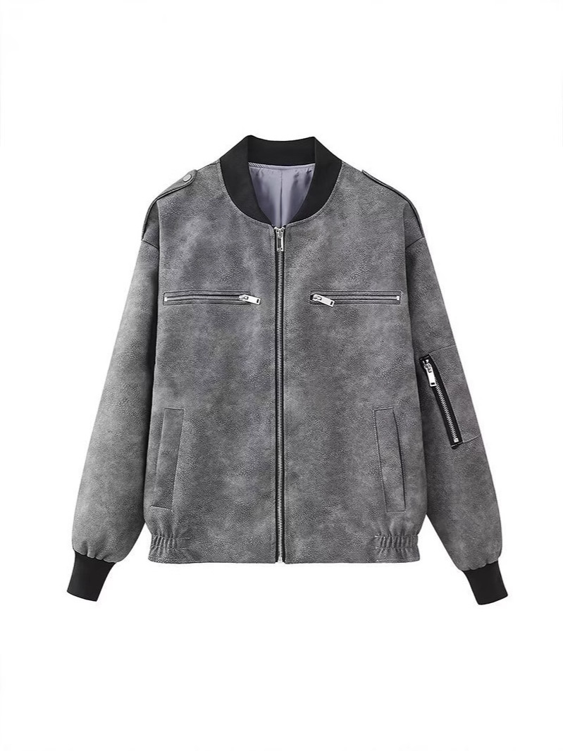 지퍼 Distressed Aviator Jacket Coat 2024 유럽 및 미국 국경 패션 여성의 긴팔 독특한 스트리트 재킷