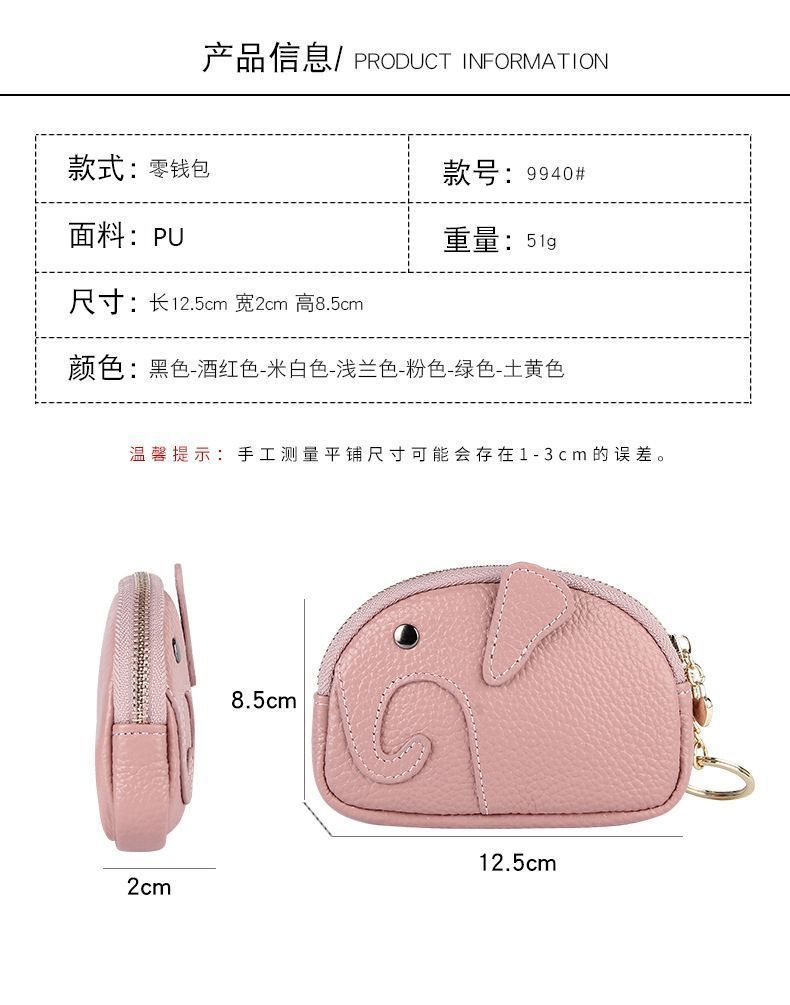 새로운 스타일 가방 창조적 인 카드 가방 키 가방 진짜 부드러운 가죽 코끼리 귀여운 동전 지갑 여성의 미니 클러치 가방 동전 가방