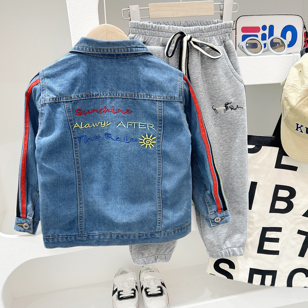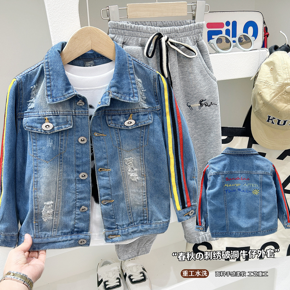 소년 데님 코트 2025 봄 어린이 코트 조수 도매 세대에 새로운 남성 아기 만화 편지 코트스토어 가기