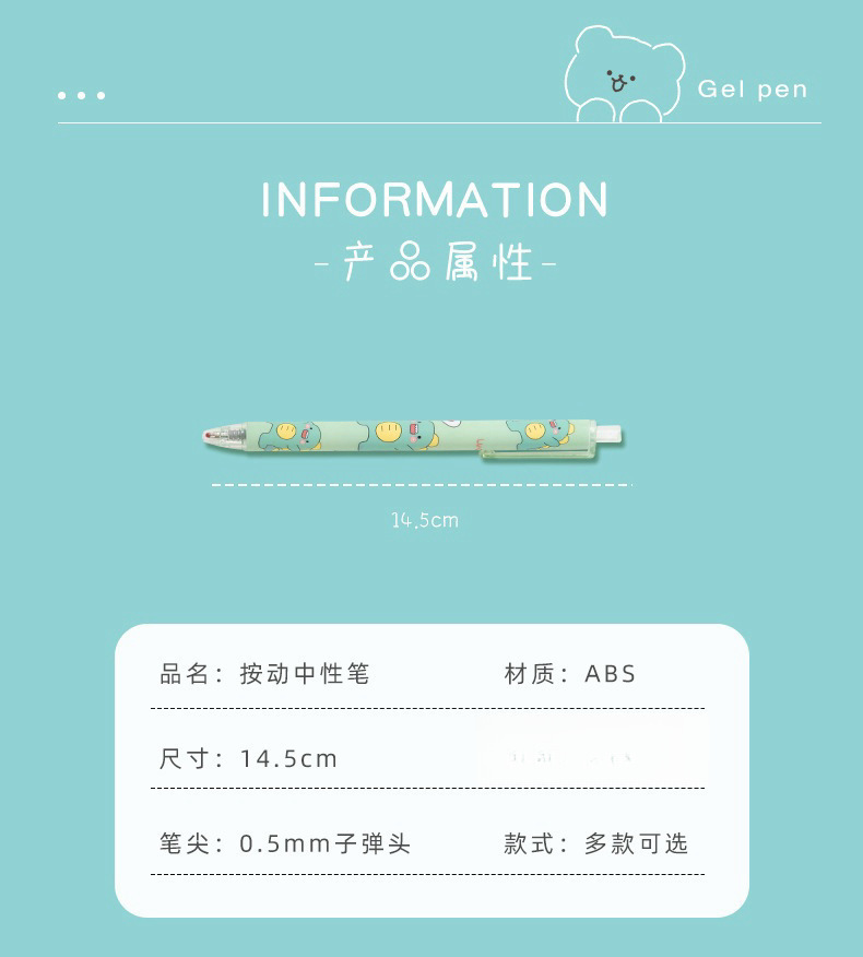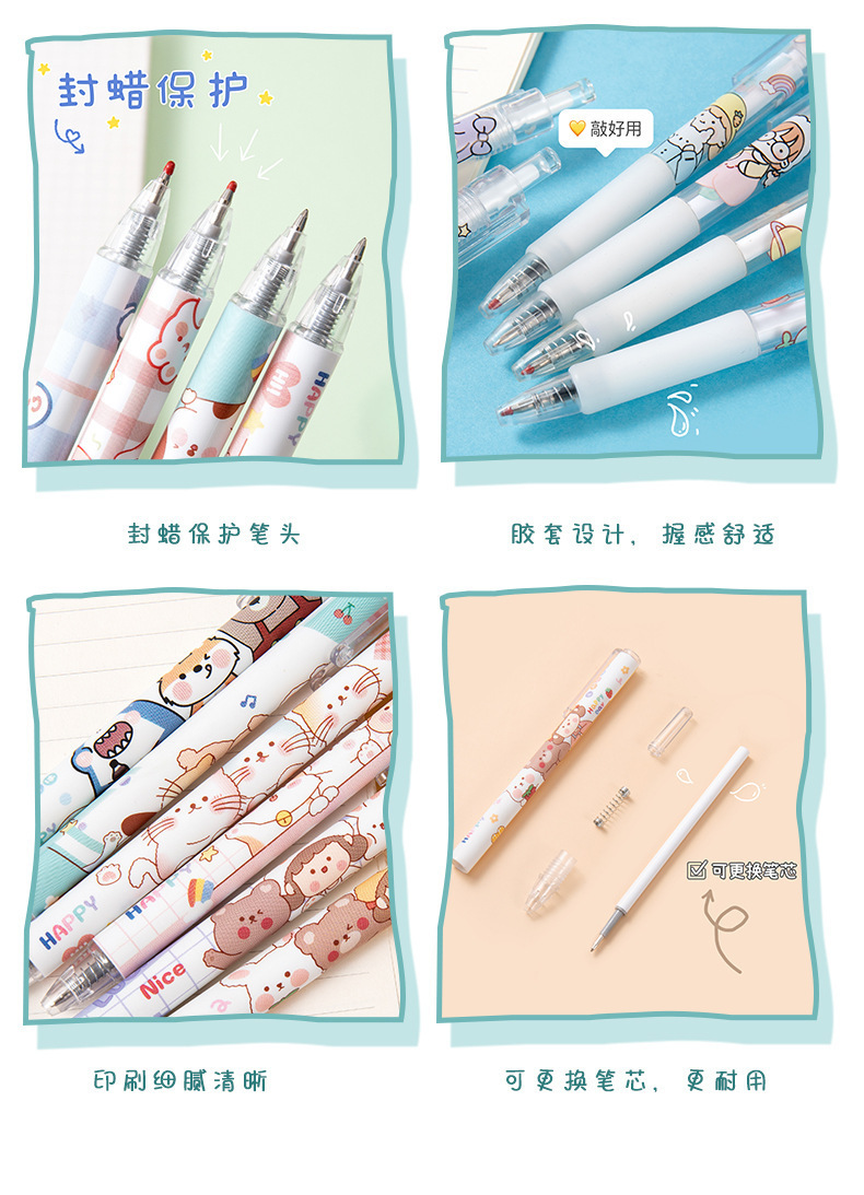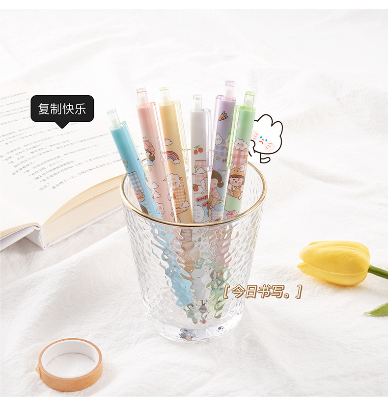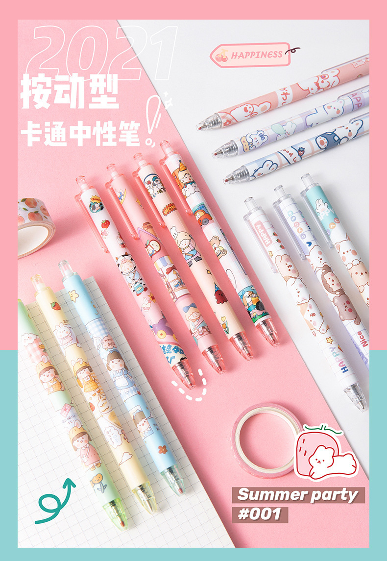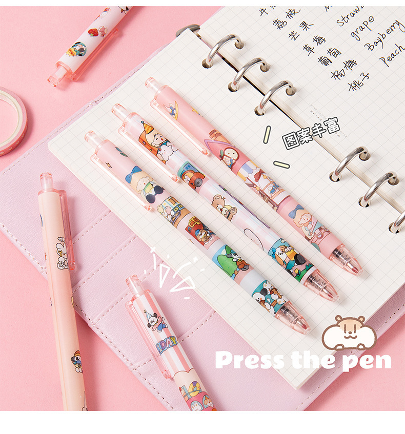 만화 캐릭터 프레스형 젤펜 도매, 귀여운 스타일의 0.5mm 검정색 서명펜, 학생용 문제풀이 펜 도매스토어 가기