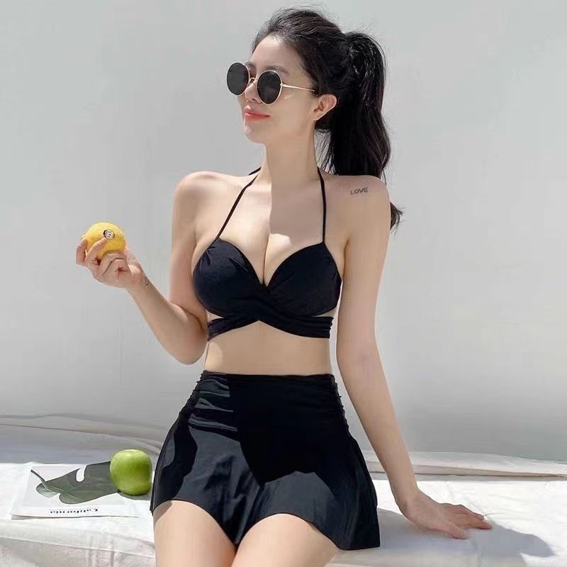 수영복 여성용 작은 가슴 스커트 트라이앵글 비키니 매달려 힙합 푸시 업 슬리밍 3 피스 온천 섹시한 큰 가슴 수영복스토어 가기