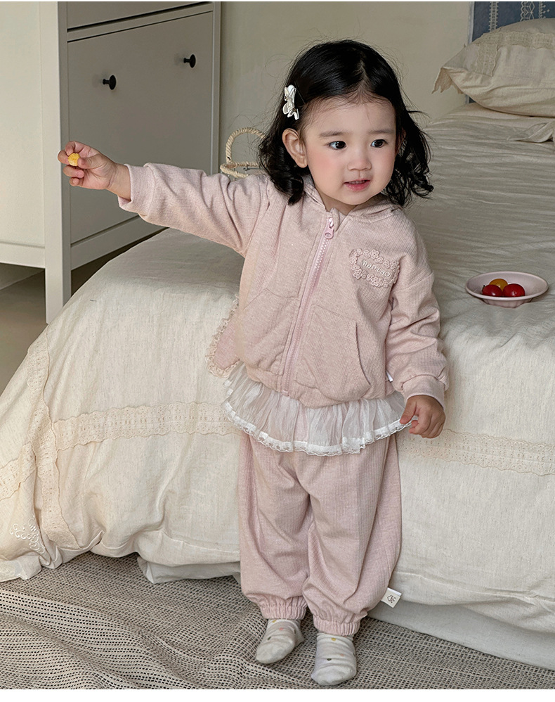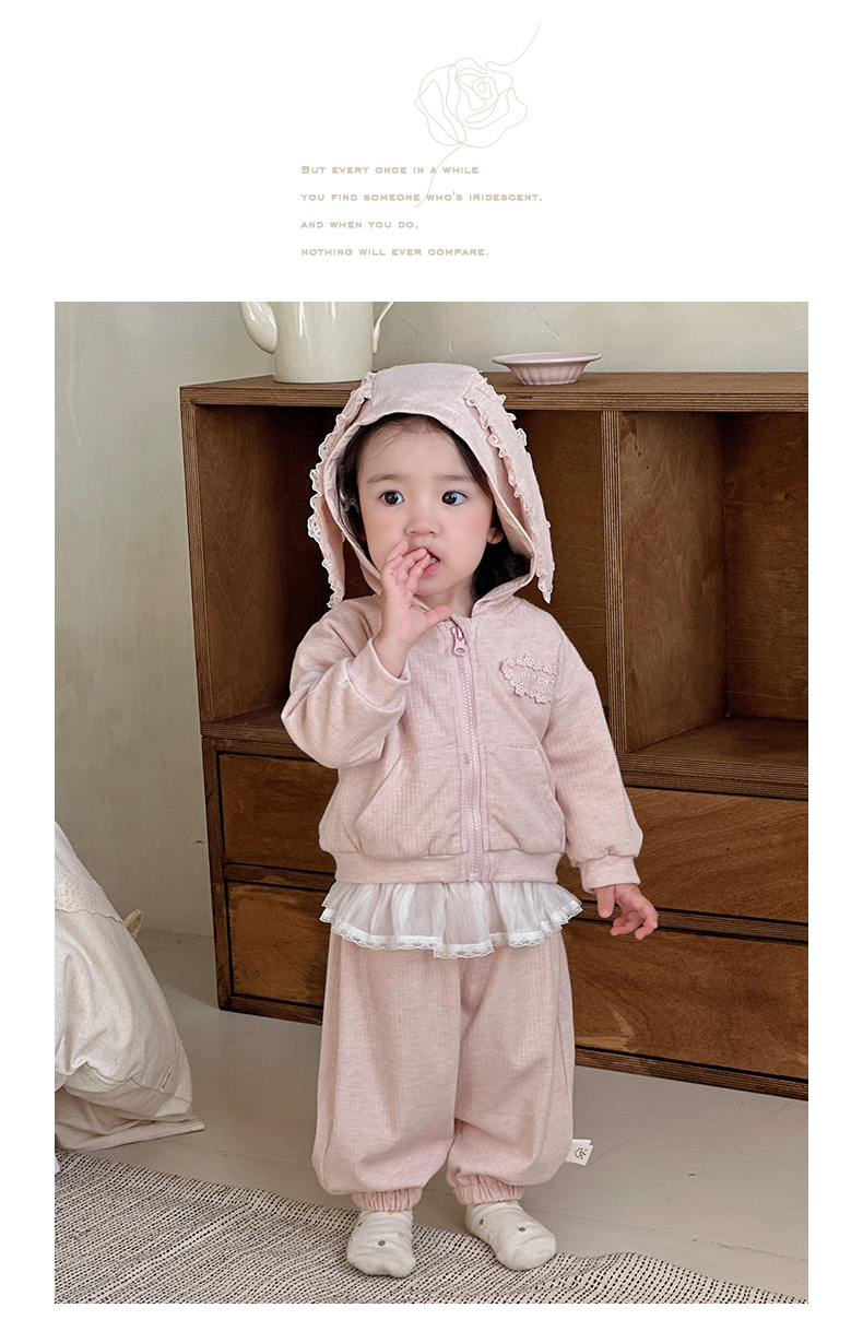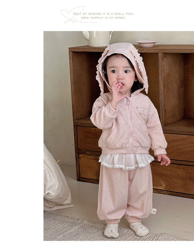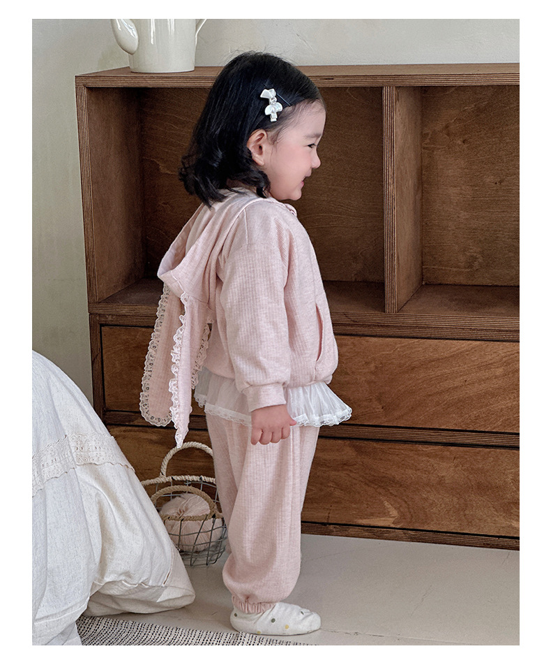 아기 긴팔 세트, 달콤한 2025년 가을 여아 캐주얼 레이스 토끼 귀 스웨트셔츠와 스웨트팬츠 투피스 세트