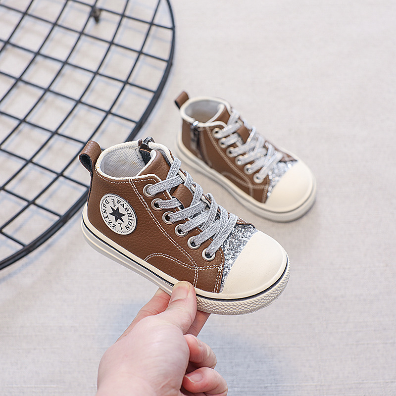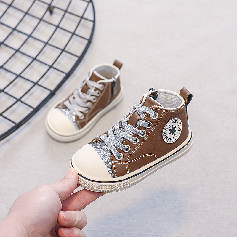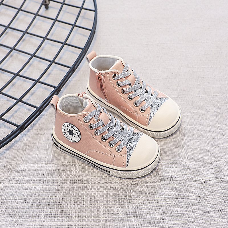 봄과 가을 아기 캐주얼 신발 소년의 코르크 신발 어린이 유아 신발 클래식 올 매치 하이 탑 세퀸 걸스 보드 신발