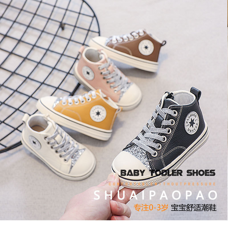 봄과 가을 아기 캐주얼 신발 소년의 코르크 신발 어린이 유아 신발 클래식 올 매치 하이 탑 세퀸 걸스 보드 신발스토어 가기