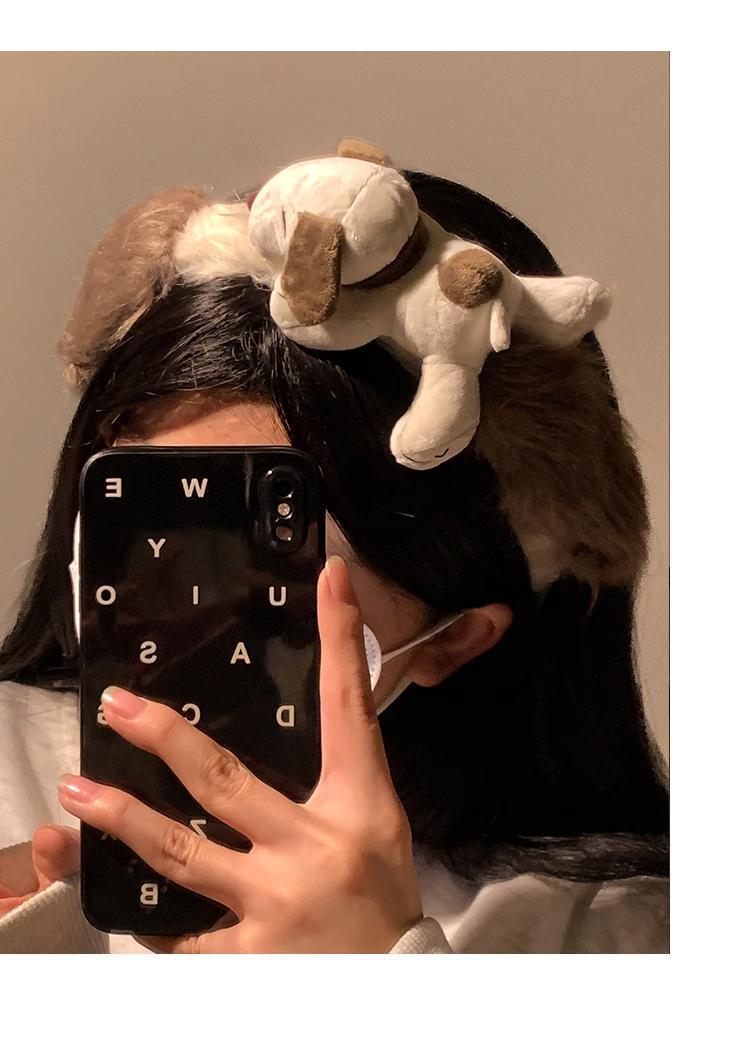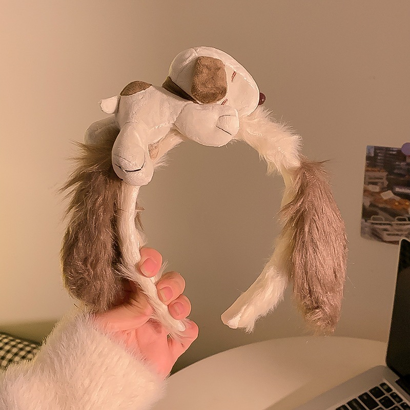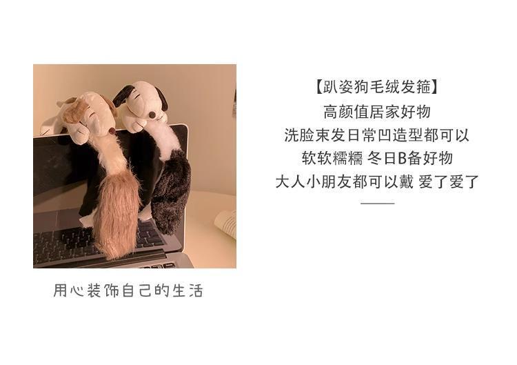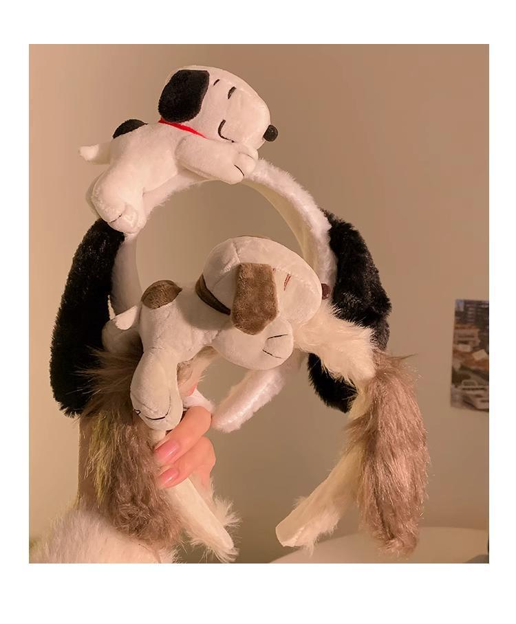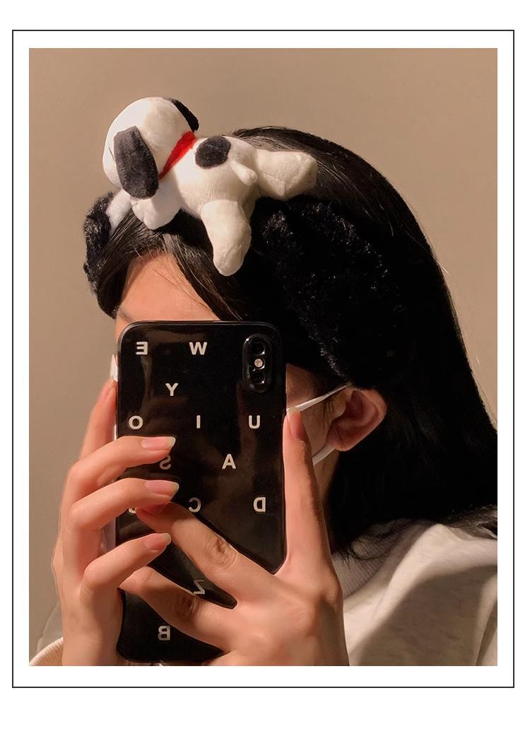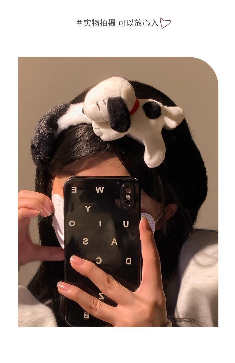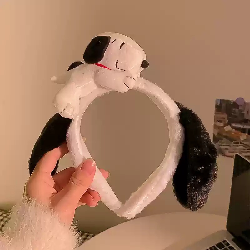 새로운 흑백 다크 브라운 스누피 봉제 머리 후프 여성의 얼굴 세척 놀이 공원 머리띠 가을과 겨울 야외 사진 헤어 액세서리