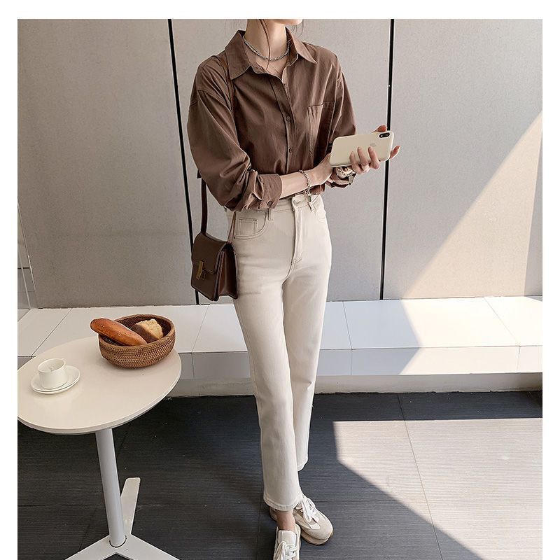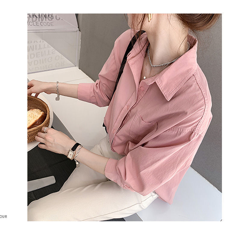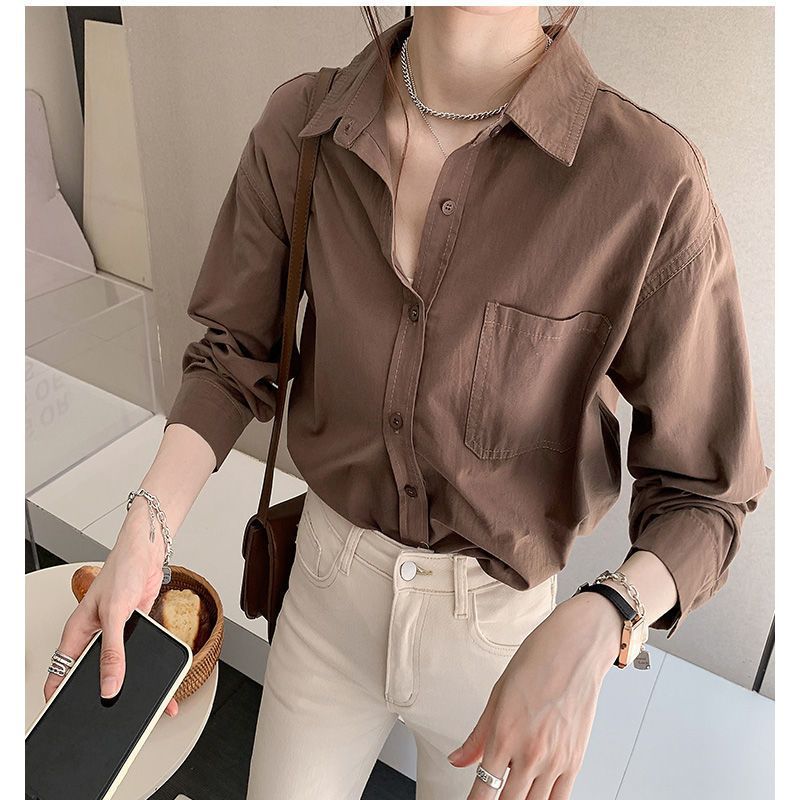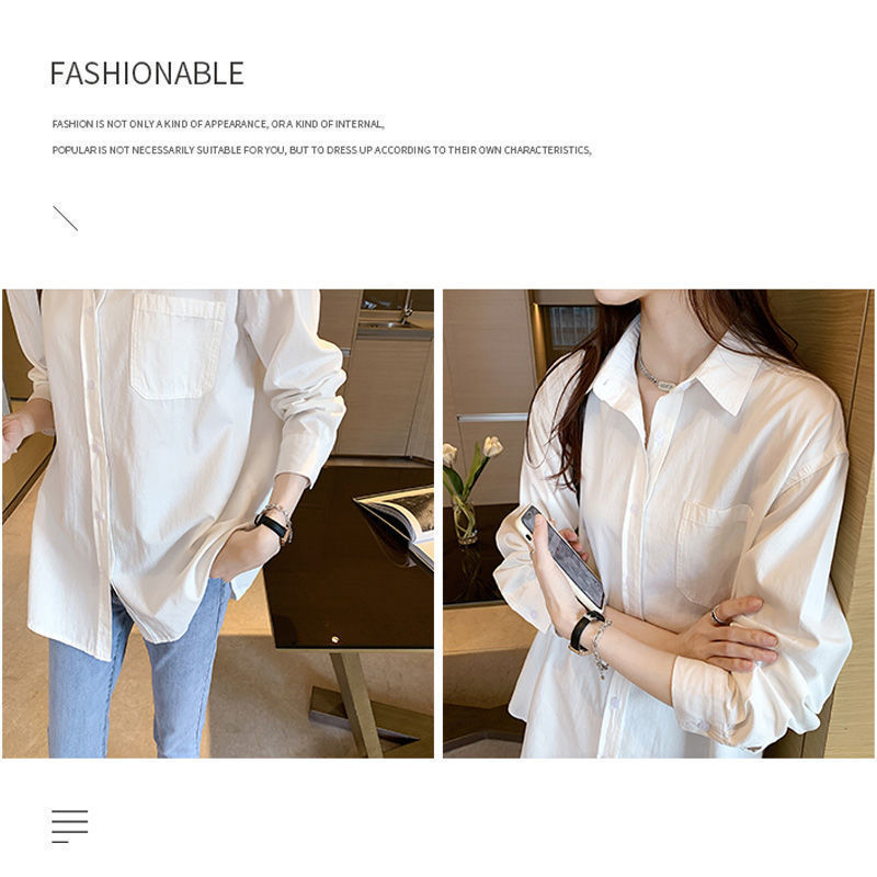 화이트 셔츠 여성용 내부 스택 우아한 중간 길이 올 매치 유행 디자인 긴팔 셔츠 플러스 사이즈 슬림 핏 탑스토어 가기