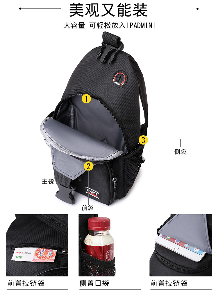 새로운 남성 가슴 가방 여성의 방수 대용량 어깨 가방 캐주얼 가방 나일론 천 크로스 바디 가방 간단한 다기능 가방