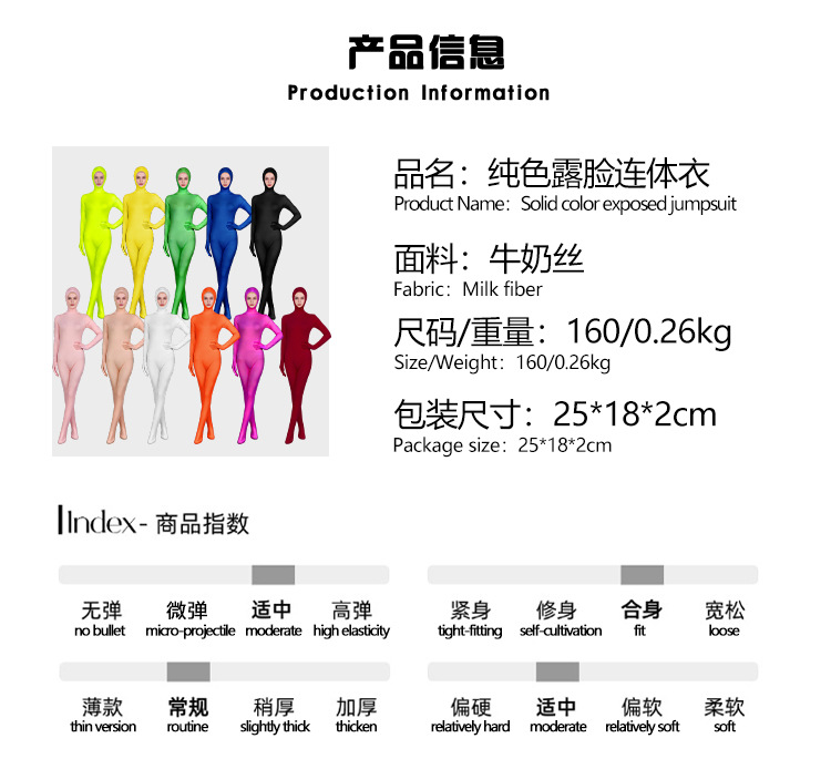 국경을 넘는 W 인기 상품, 얼굴이 드러나는 밀크 실크 타이즈, 젠타이 단색 원피스, 무대 위장 공연 의상