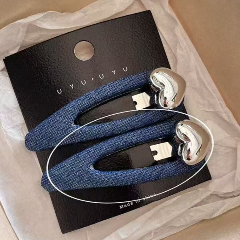 • 데님 블루 하트 컷아웃 물방울 BB핀 1개