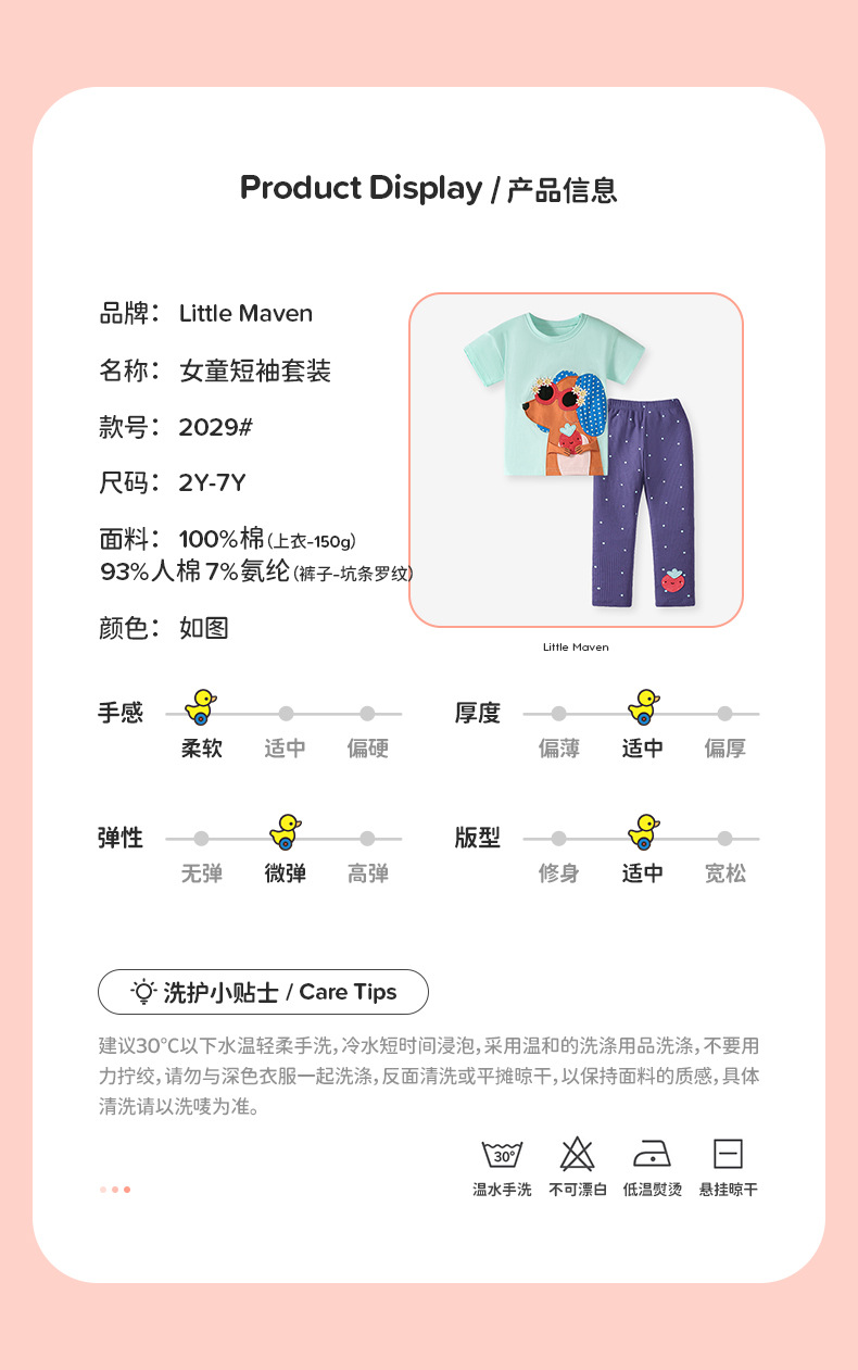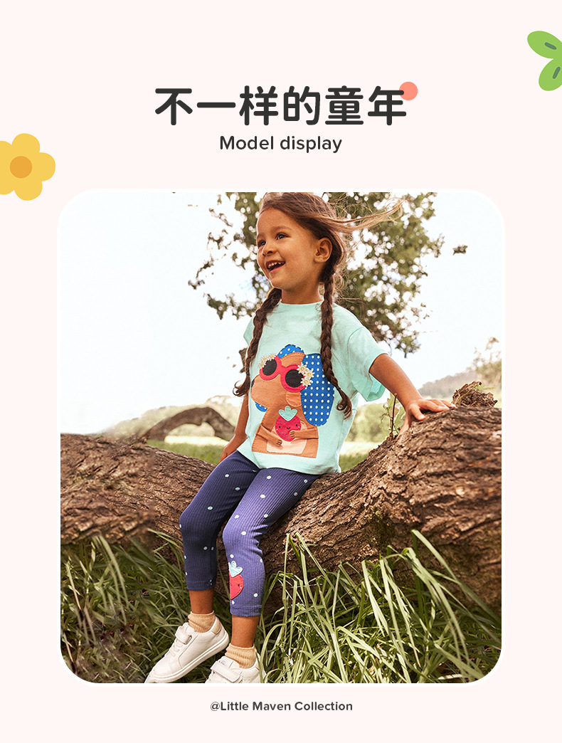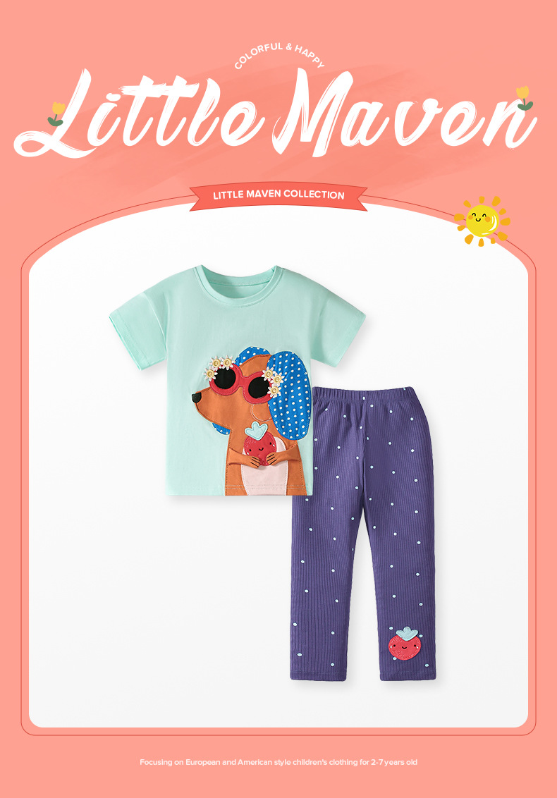 리틀 메이븐 뉴 걸스 세트 여름 티셔츠 바지 유럽과 미국 만화 어린이 세트스토어 가기