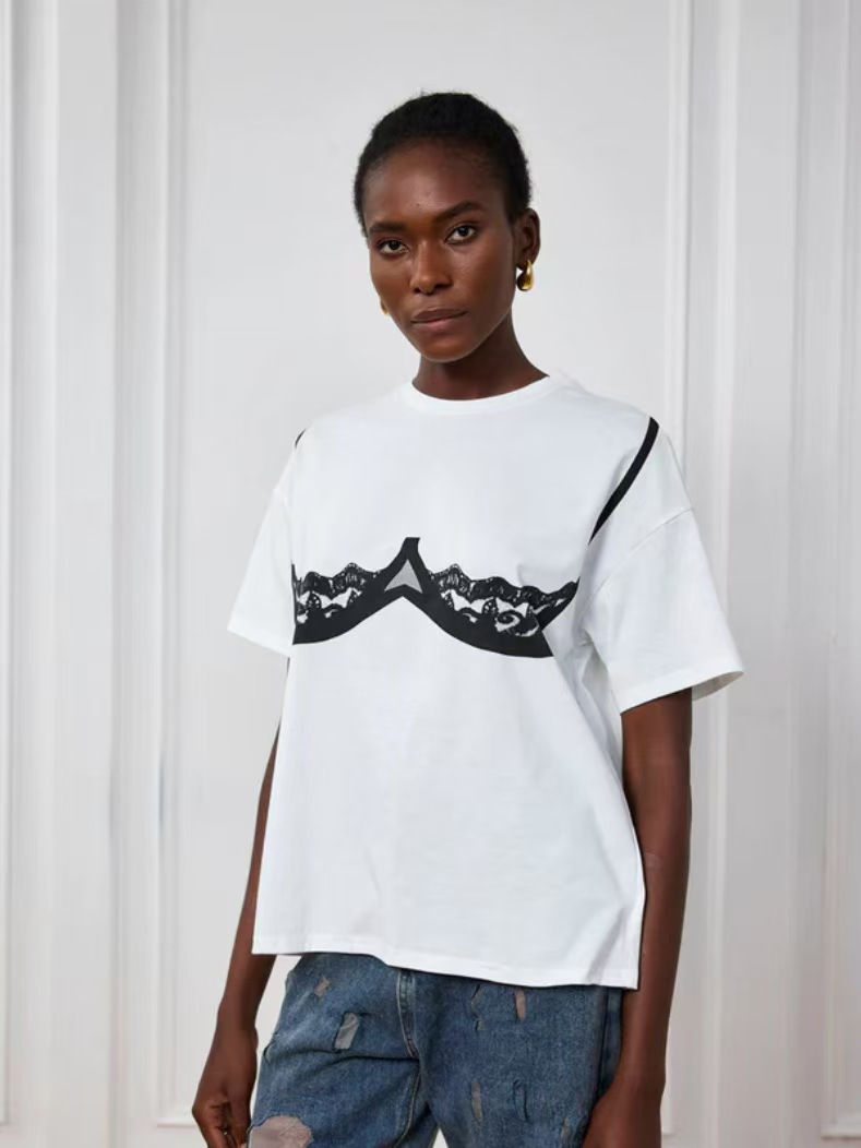 퓨어 코튼 중간 길이 반팔 티셔츠 여성 여름 유럽과 미국 달콤한 매운 3 차원 활 장식 느슨한 올매치 트렌디 탑