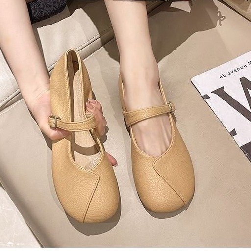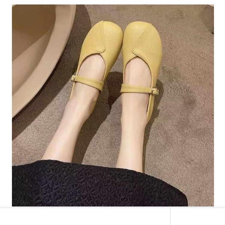 메리 제인 싱글 레이어 신발 여성의 2024 새로운 도착 패셔너블 올 매치 한 단어 플랫 얕은 입 요정 스타일 부드러운 밑창 할머니 신발스토어 가기