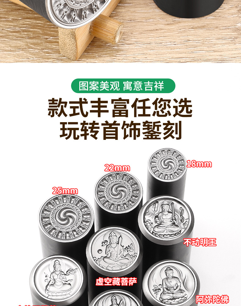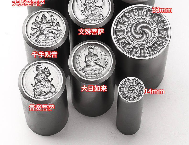 8 명의 수호 성도 Samantas Bodhisattva Thousand-Hands Guanyin CNC 릴리프 스틸 씰 Xi Xuan 스틸 씰 골드 및 실버 태그 펀치