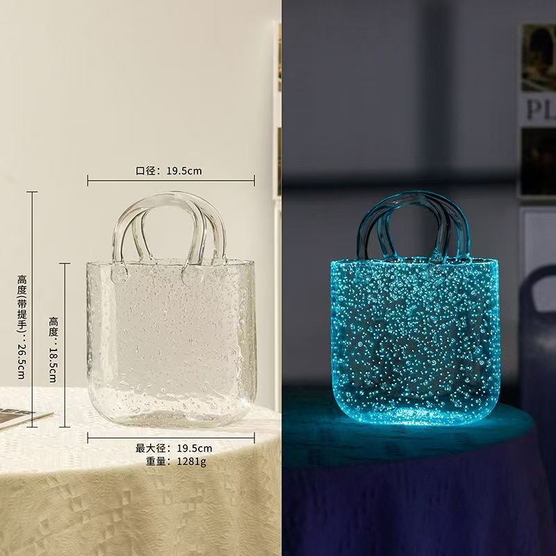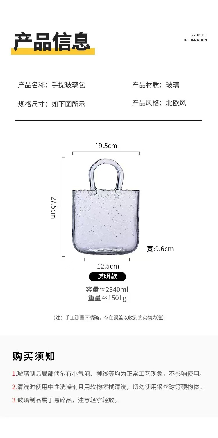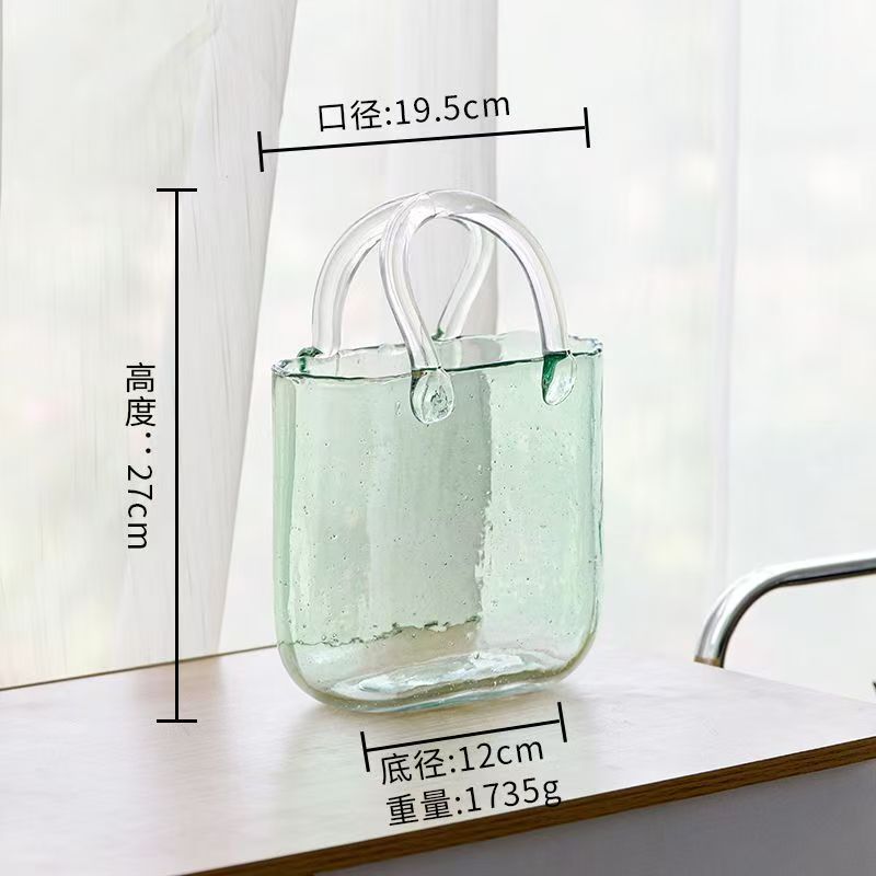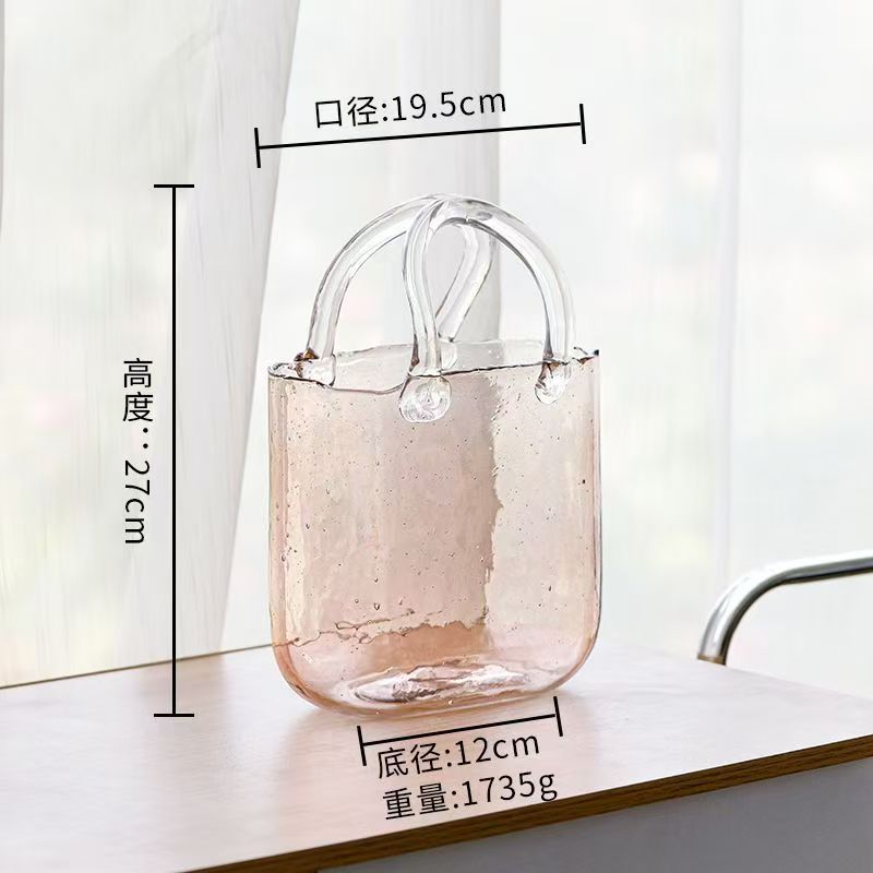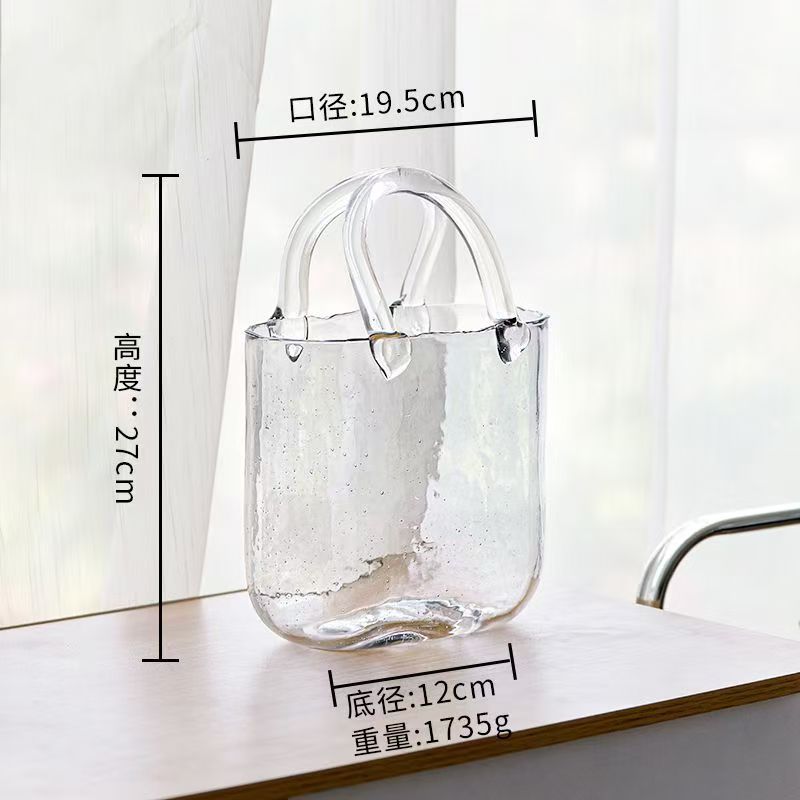 투명한 바닥 장식품 거실 큰 배 유리 꽃병 핸드백 북유럽 수직 꽃병 수경 꽃병