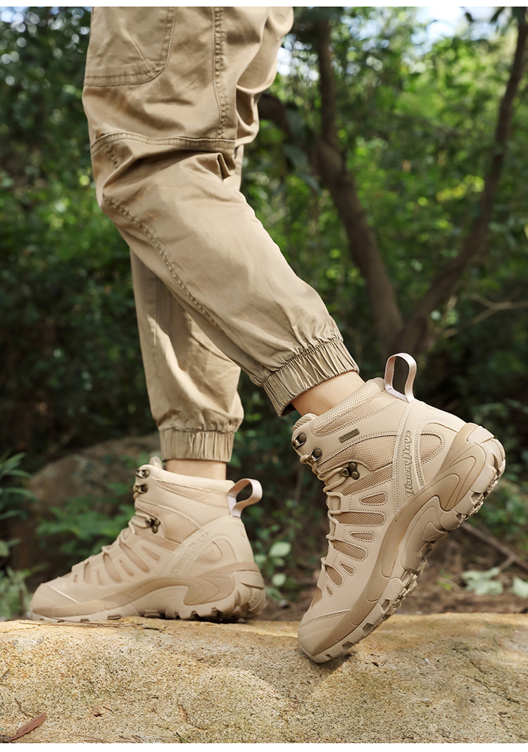 국경 간 대형 하이킹 부츠 야외 하이킹 부츠 전술 가방 방수 통기성 하이킹 전투 부츠 훈련 부츠 남성용 하이탑