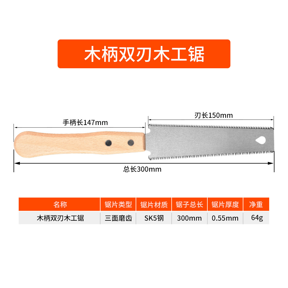 • 17/6-10 프로그레시브 치아 등나무 손잡이 양날 목공 톱