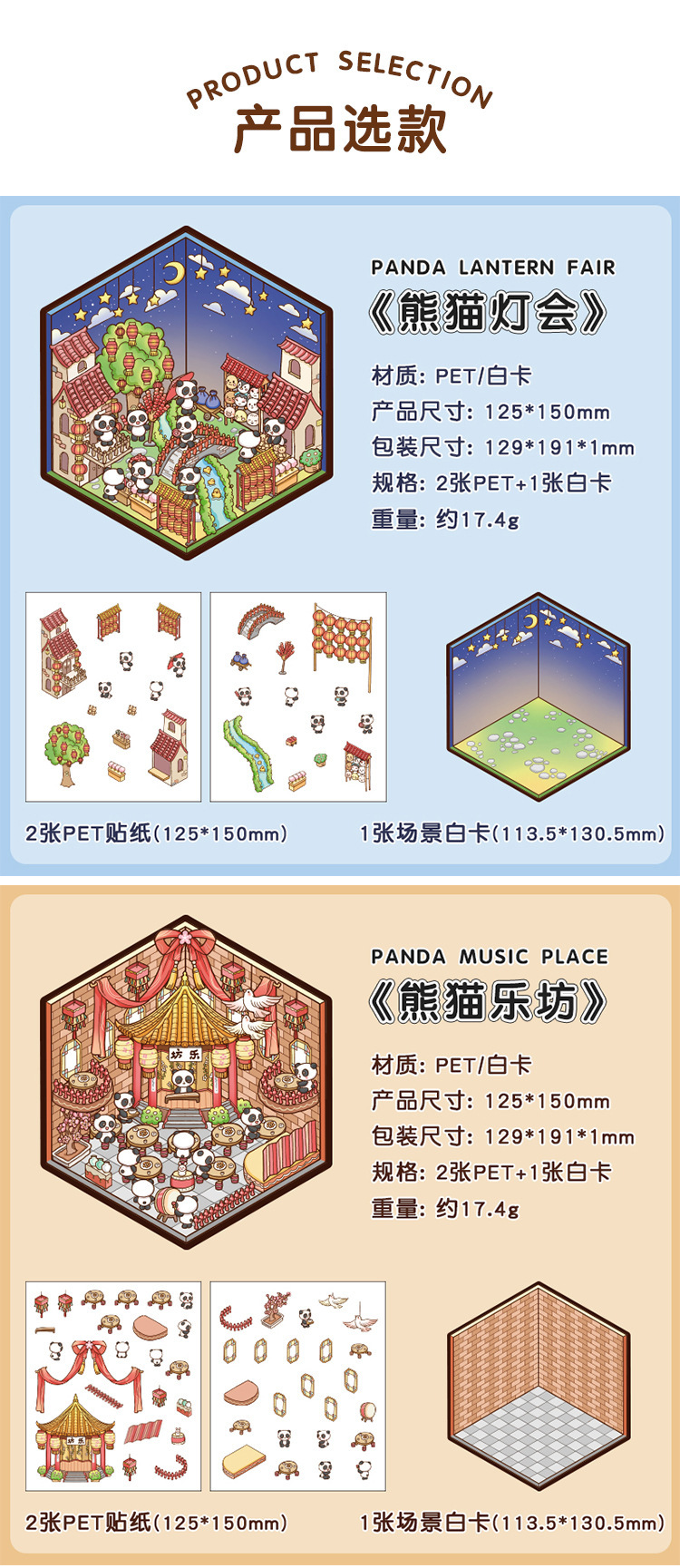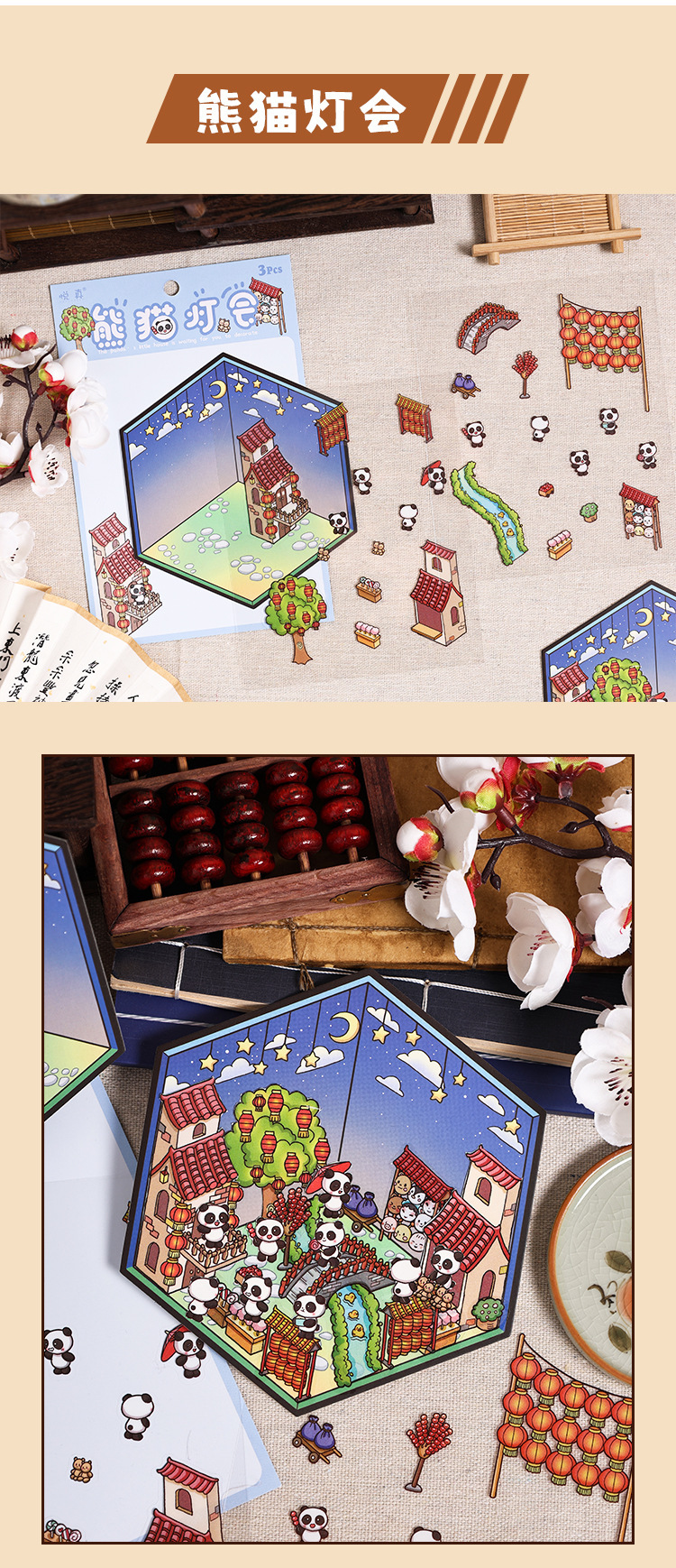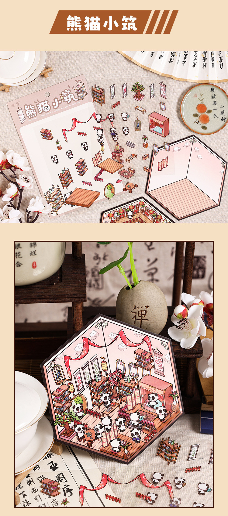 팬더 하우스 스태킹 마이크로 장면 풍경 스티커 어린이 교육 스티커 3D 헛 감압 작은 장난감스토어 가기
