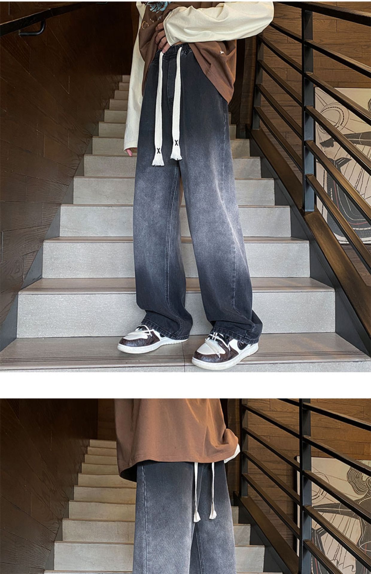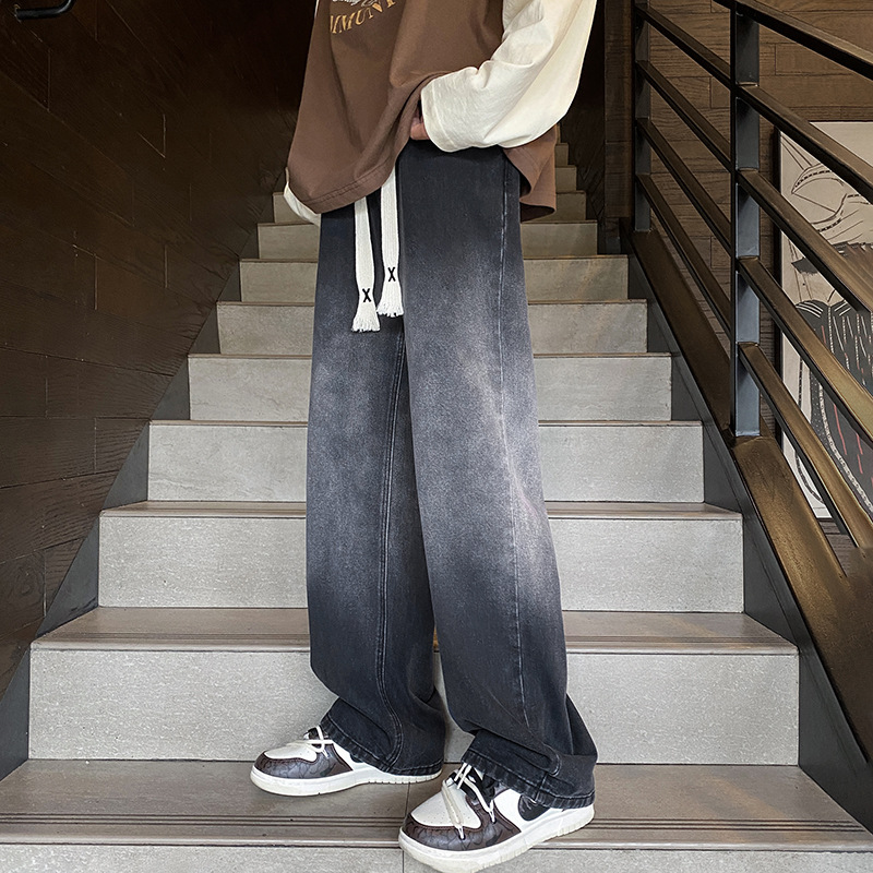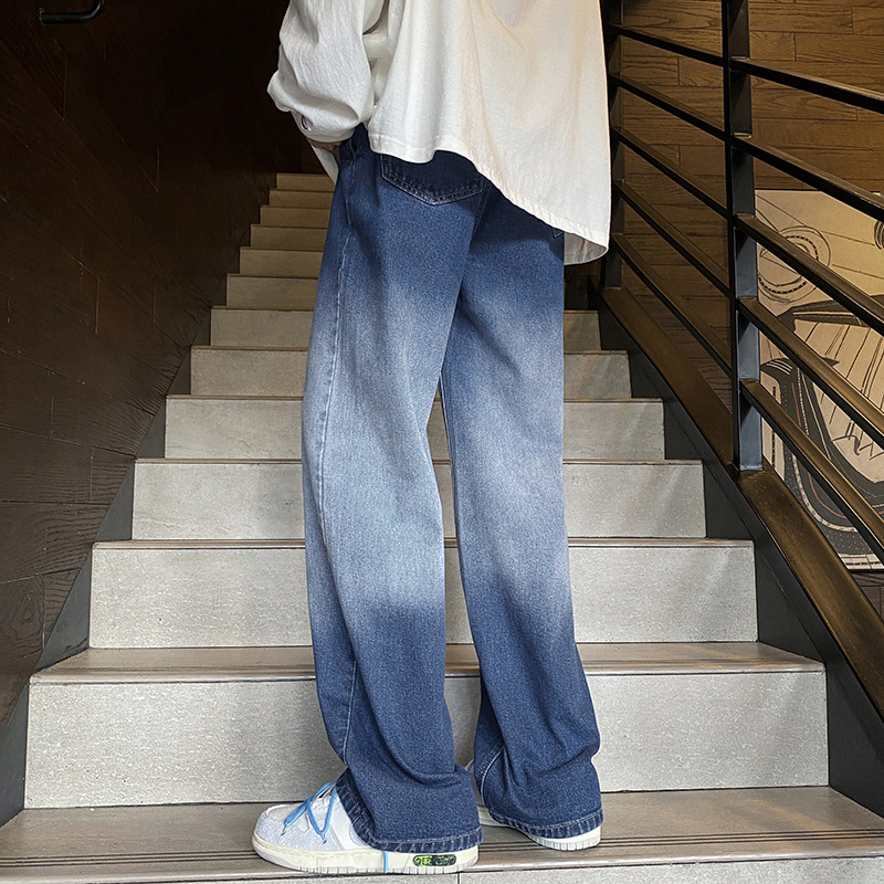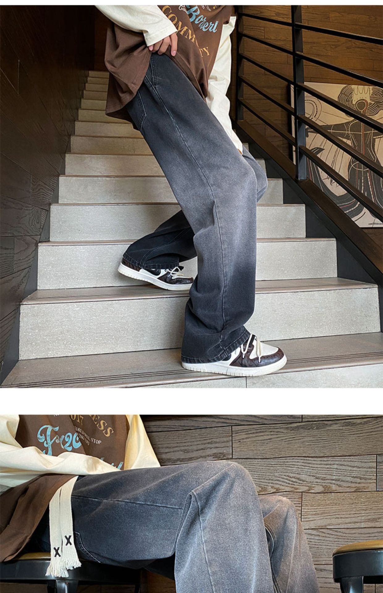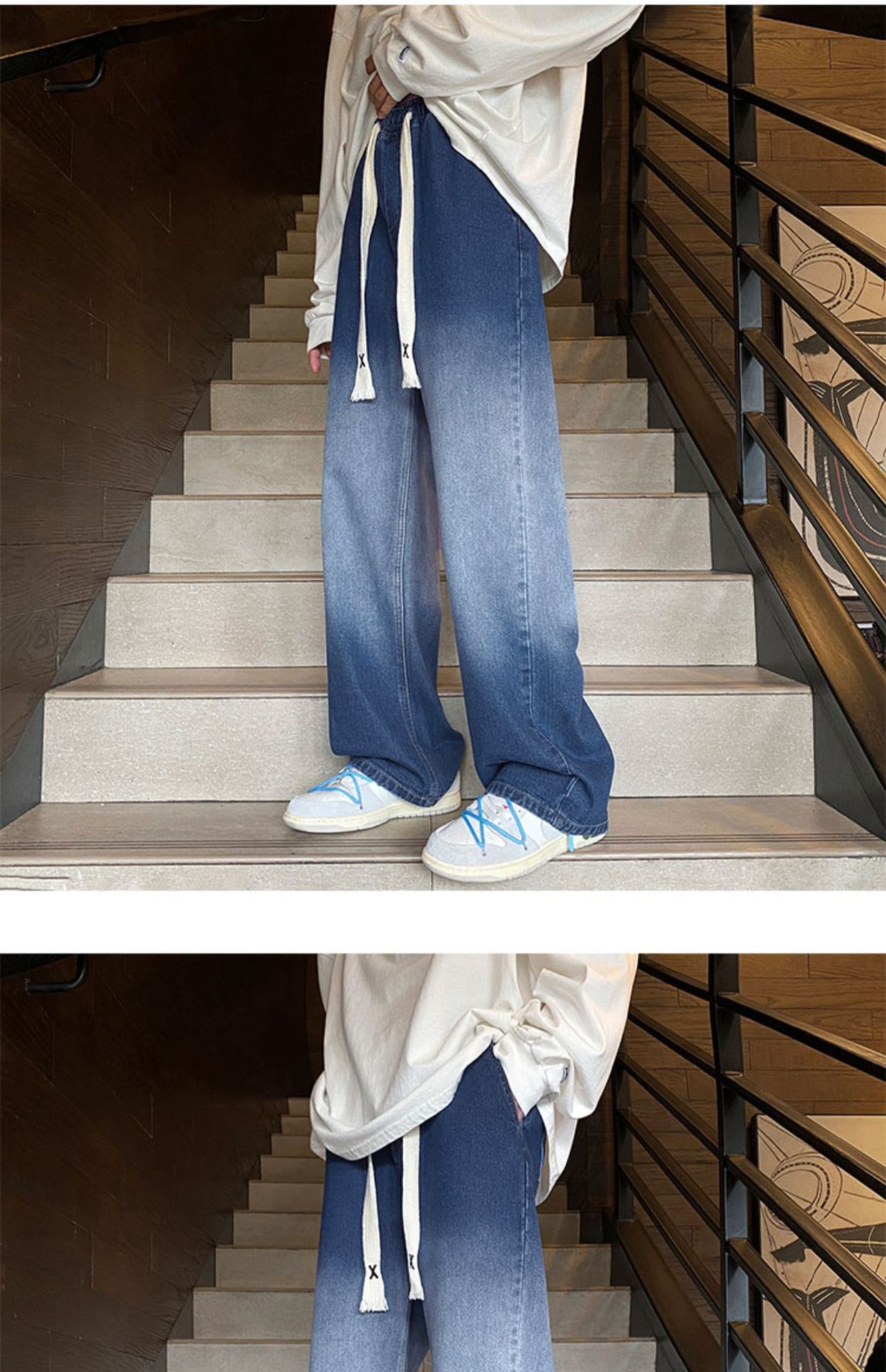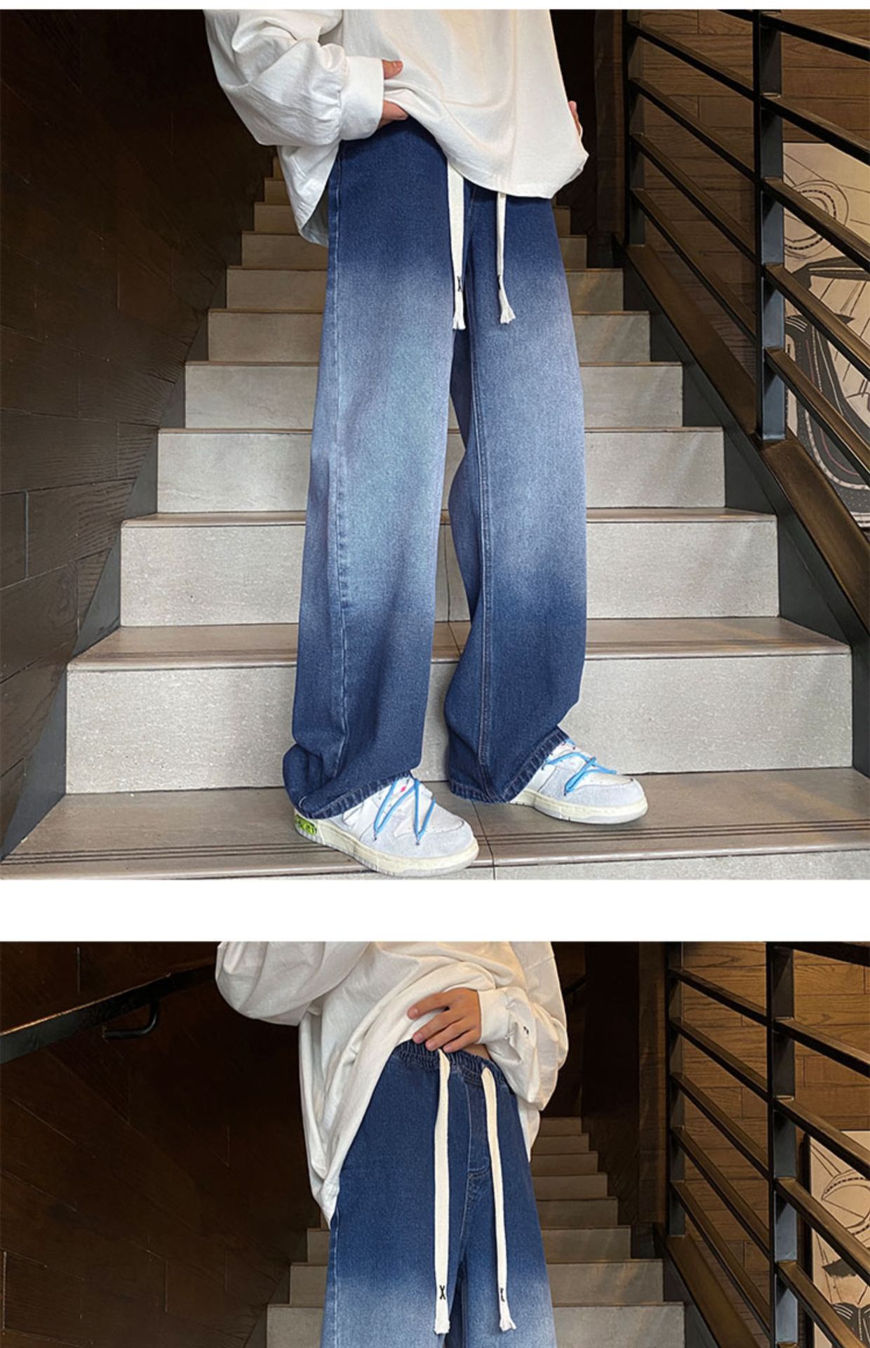 그라디언트 청바지 남성용 트렌디 인 학생 스트레이트 슬림 와이드 레그 팬츠 세련된 홍콩 스타일 레트로 느슨한 플러스 사이즈 바지스토어 가기