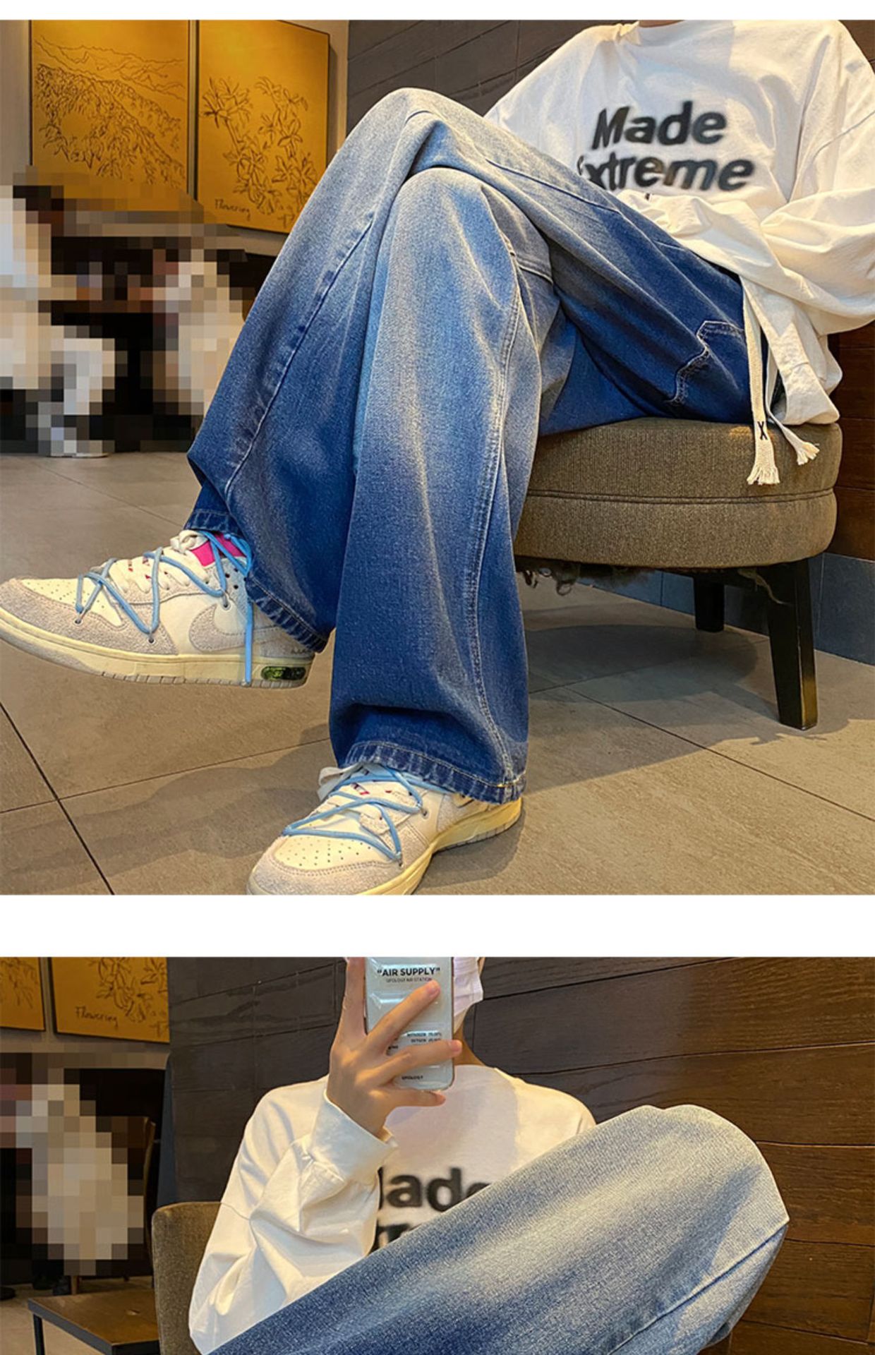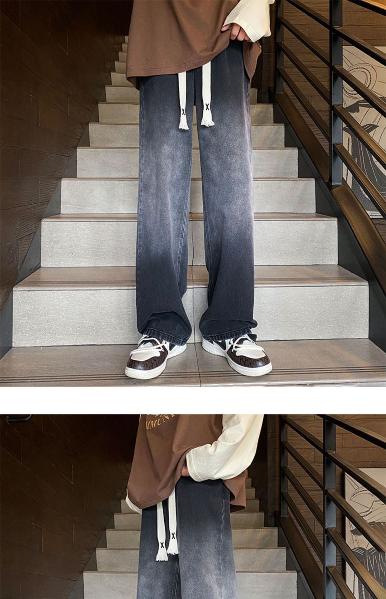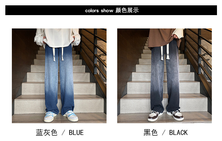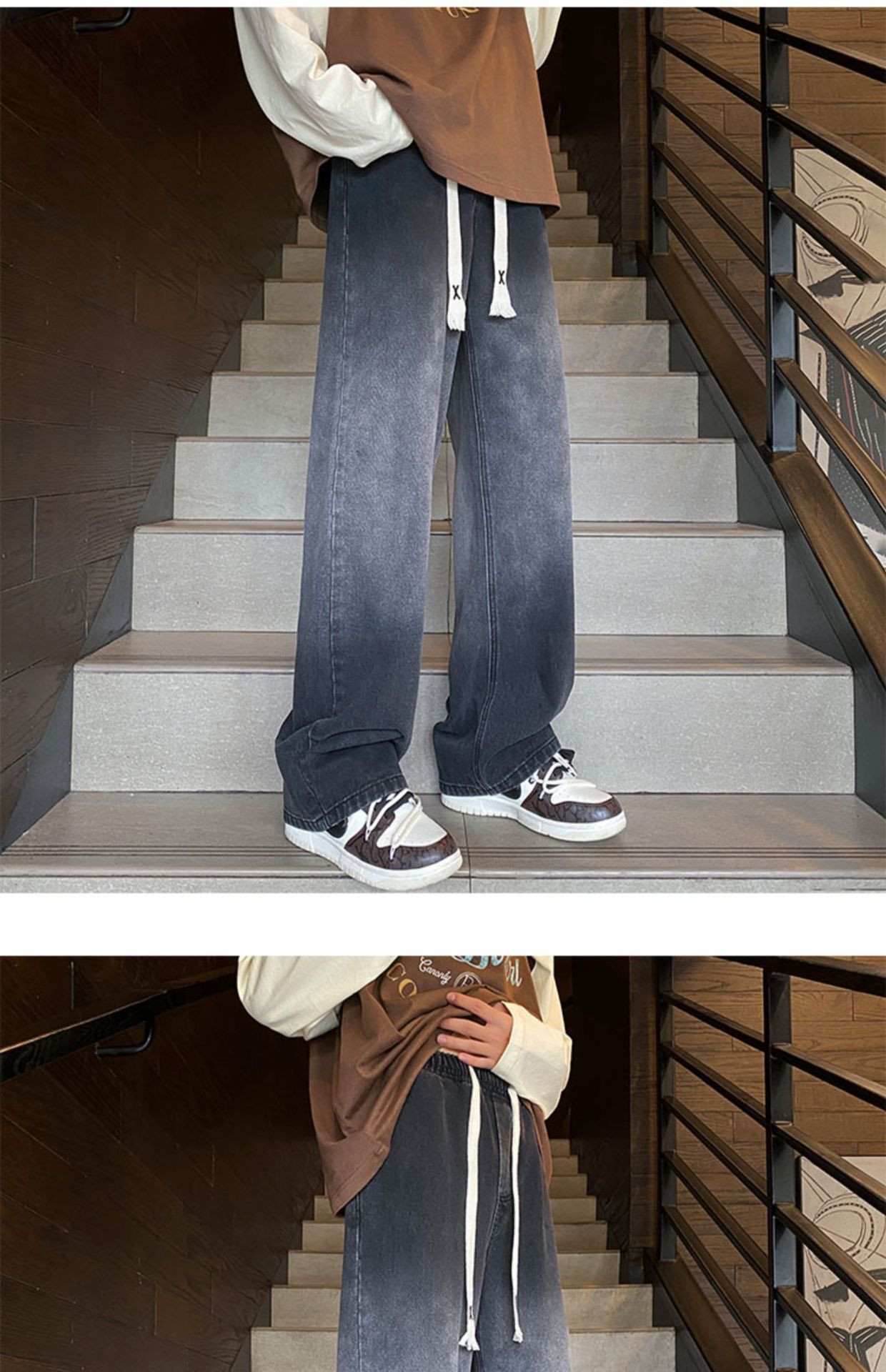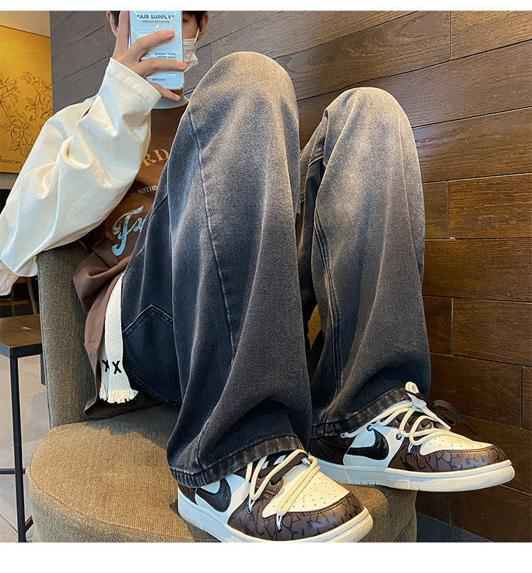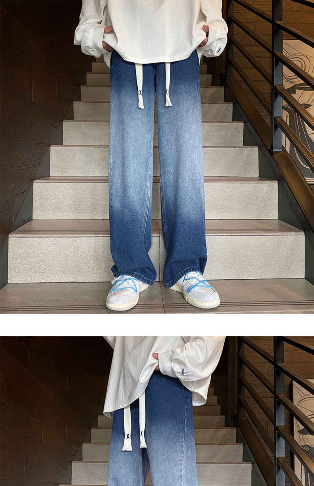 그라디언트 청바지 남성용 트렌디 인 학생 스트레이트 슬림 와이드 레그 팬츠 세련된 홍콩 스타일 레트로 느슨한 플러스 사이즈 바지스토어 가기