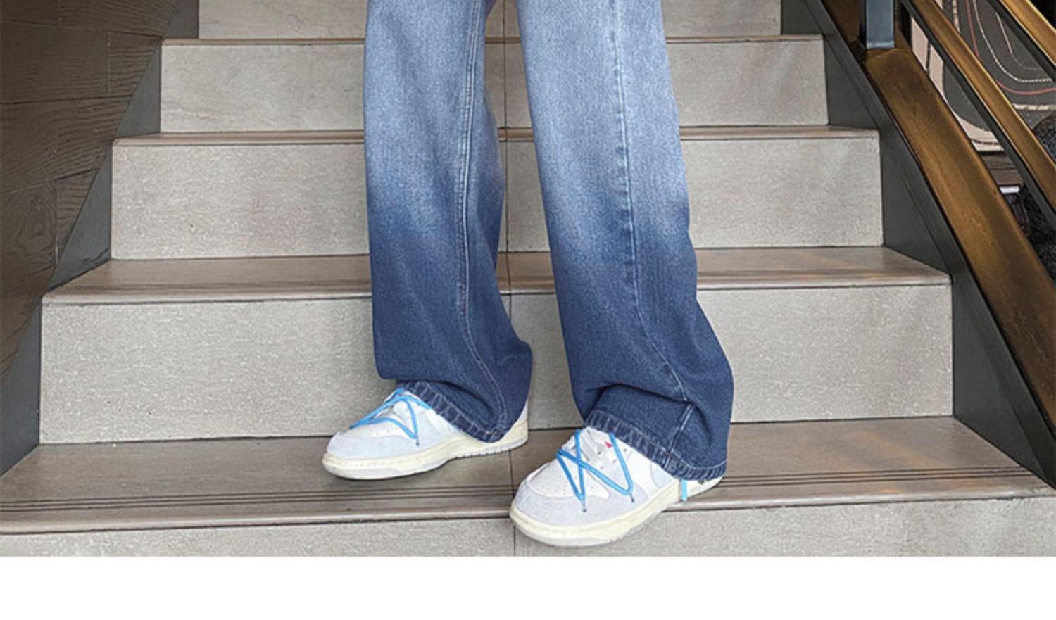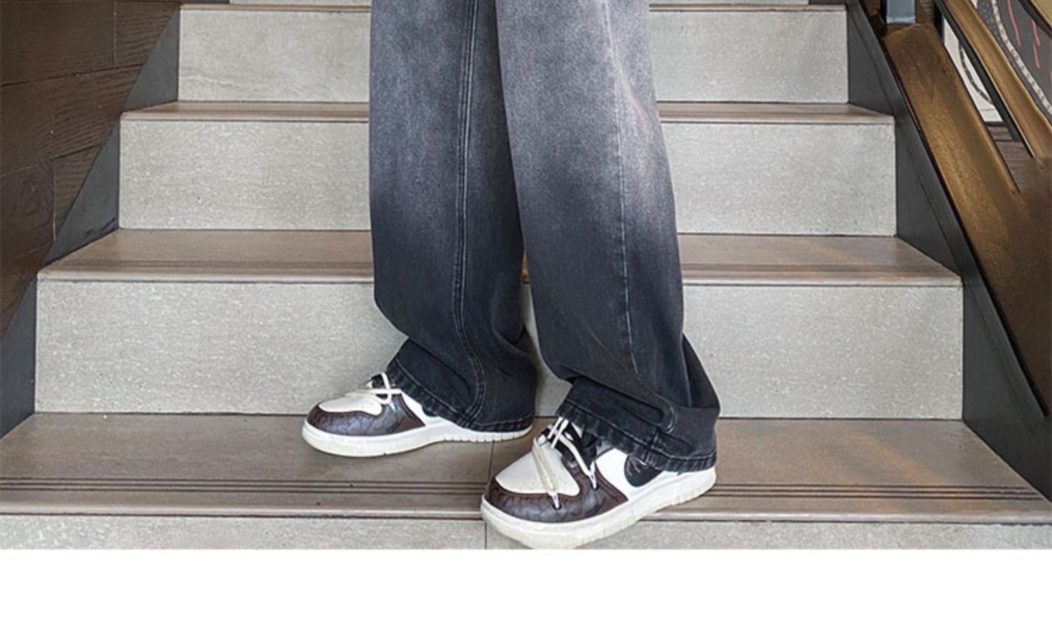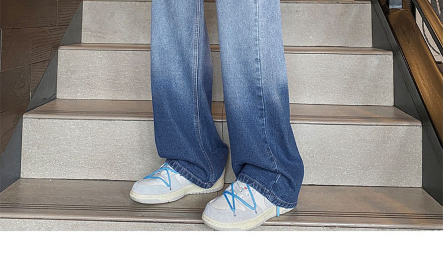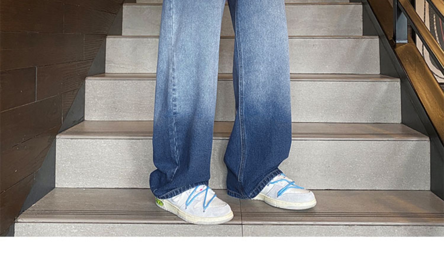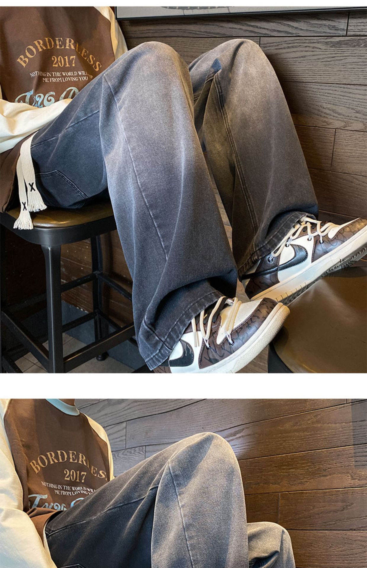 그라디언트 청바지 남성용 트렌디 인 학생 스트레이트 슬림 와이드 레그 팬츠 세련된 홍콩 스타일 레트로 느슨한 플러스 사이즈 바지스토어 가기