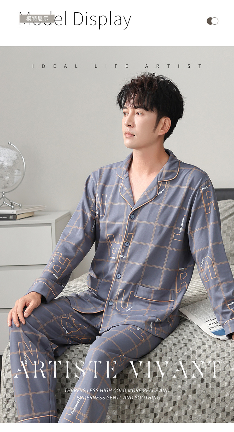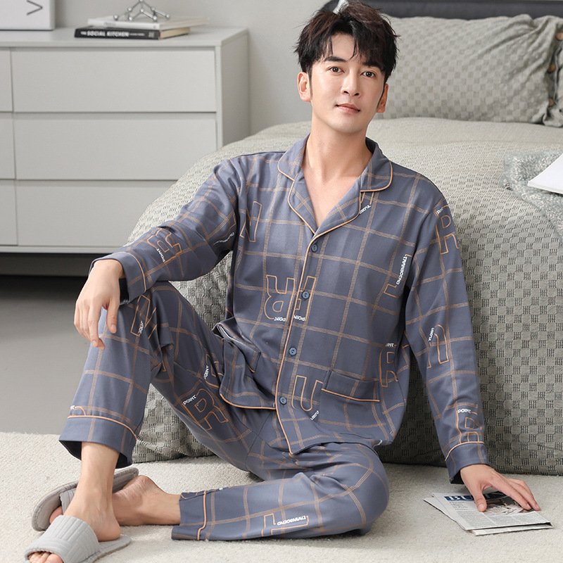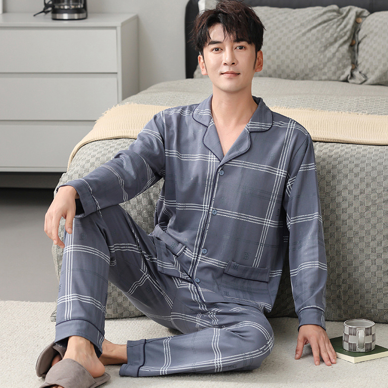 5XL 엑스트라 대형 남성 잠옷 니트 코튼 긴 소매 카디건 플러스 사이즈 100.00 kg-115.00 kg 엑스트라 대형 팻 가이 홈 의류스토어 가기