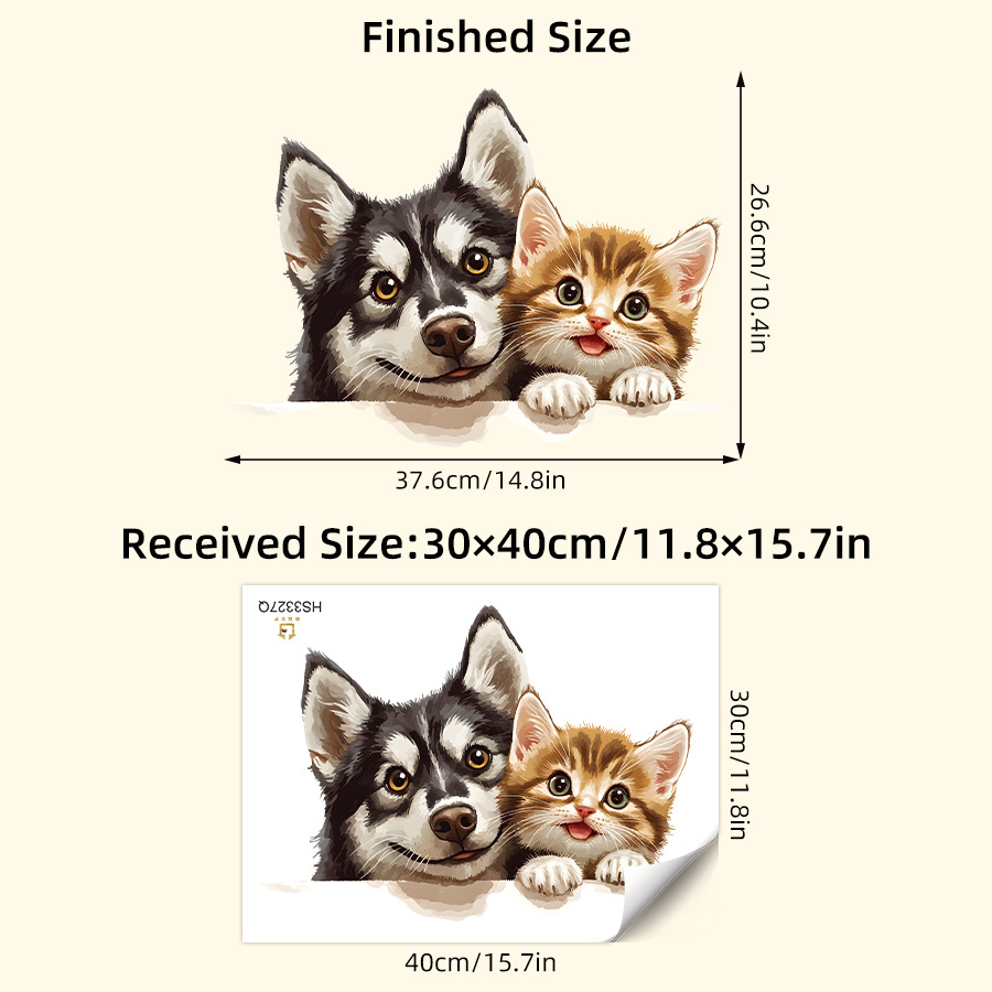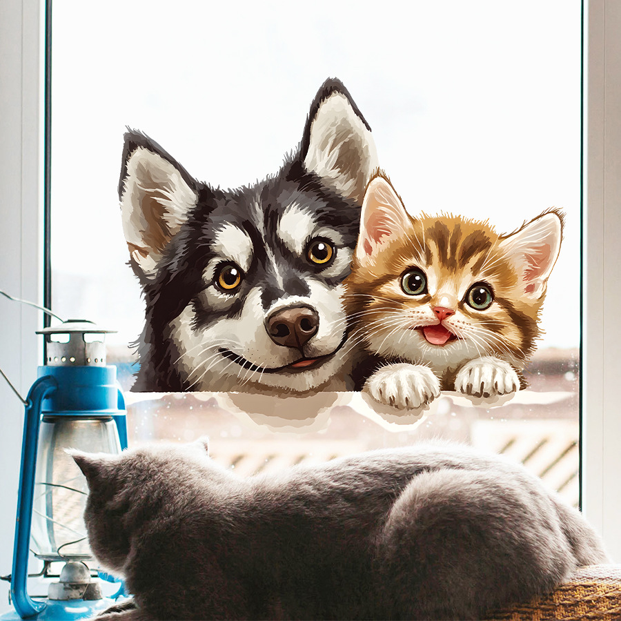 귀여운 고양이와 개 프로브 수채화 치료 자체 접착 창 스티커 침실 거실 양면 시각적 장식 스티커 HS3327Q스토어 가기