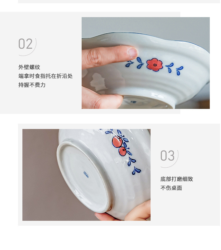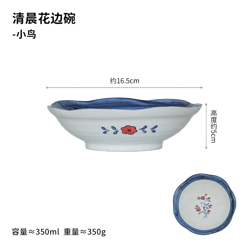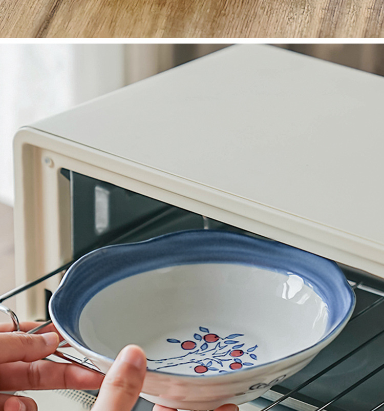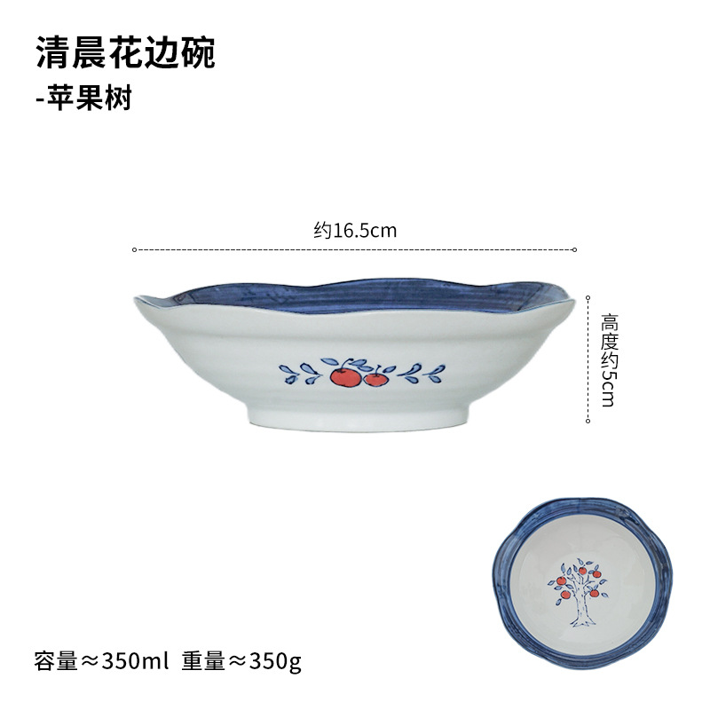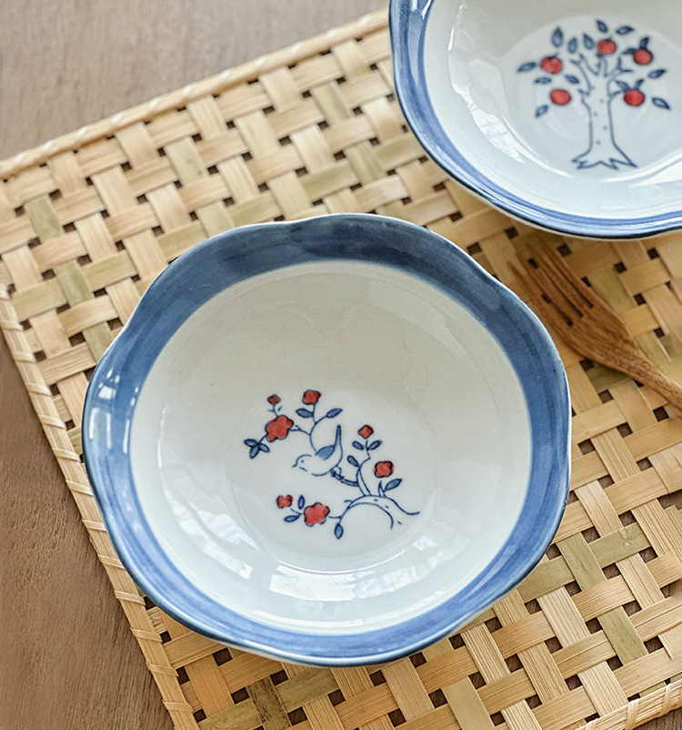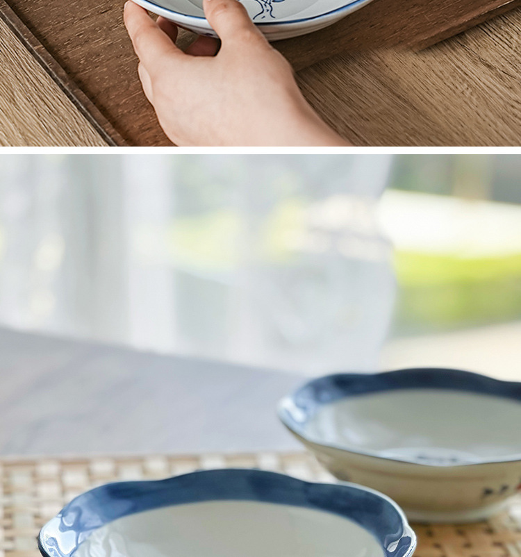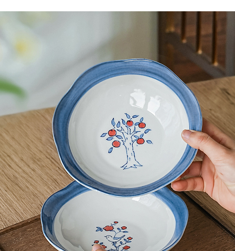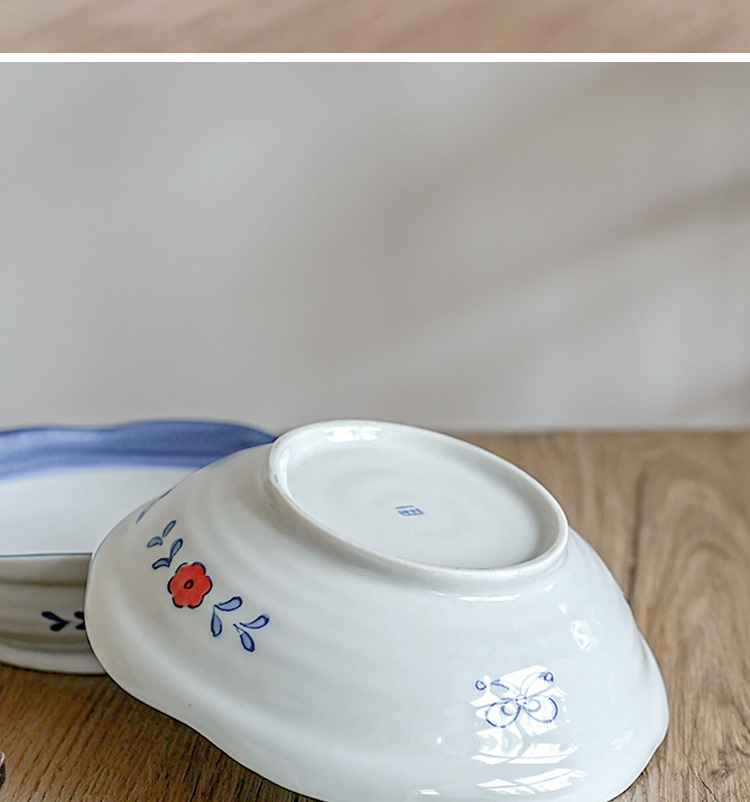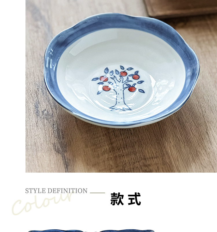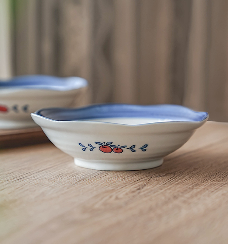 일본식 레이스 얕은 그릇, 깊은 작은 접시, 신선하고 귀여운 손으로 그린 유약 세라믹 접시, 고급 과일 접시스토어 가기