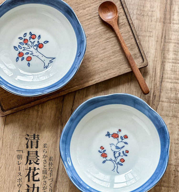 일본식 레이스 얕은 그릇, 깊은 작은 접시, 신선하고 귀여운 손으로 그린 유약 세라믹 접시, 고급 과일 접시