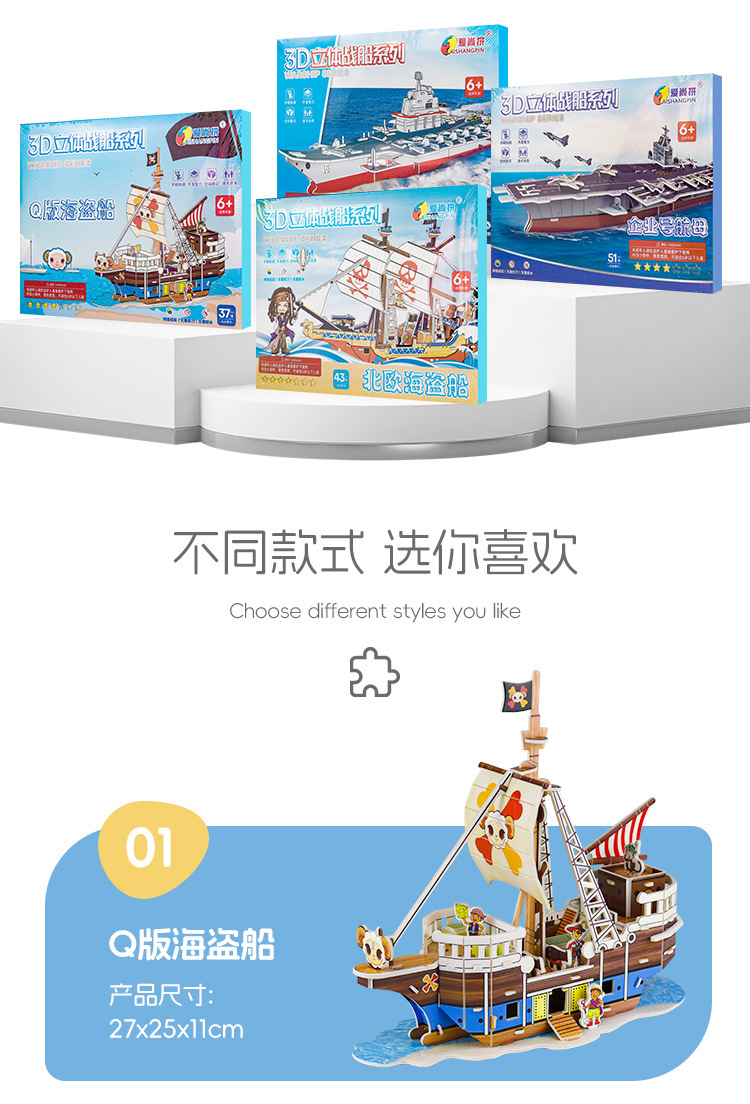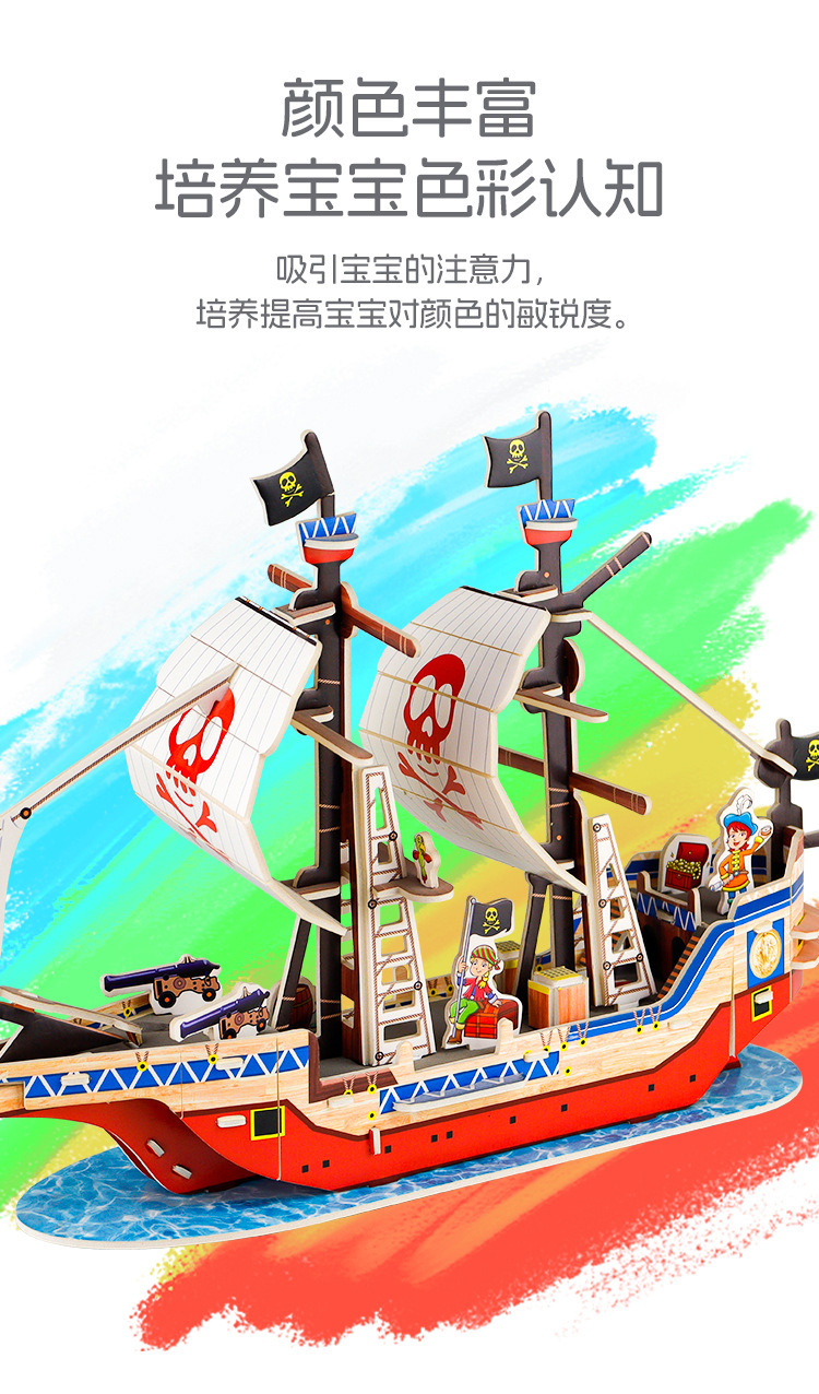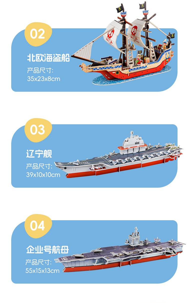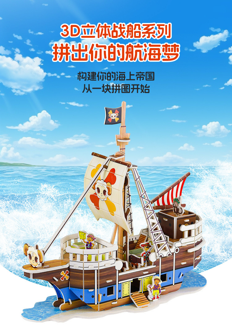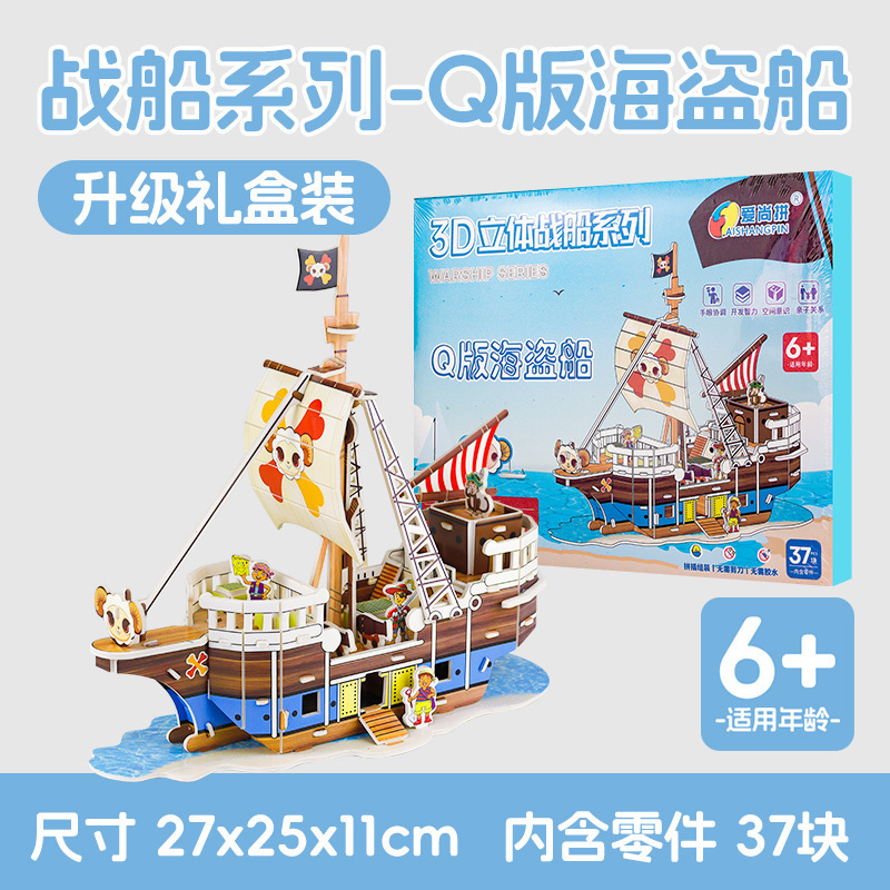 만화 항공 모함 모델 3 차원 퍼즐 퍼즐 종이 3D 퍼즐 퍼즐 DIY 어린이 수제 선물 상자 해적선