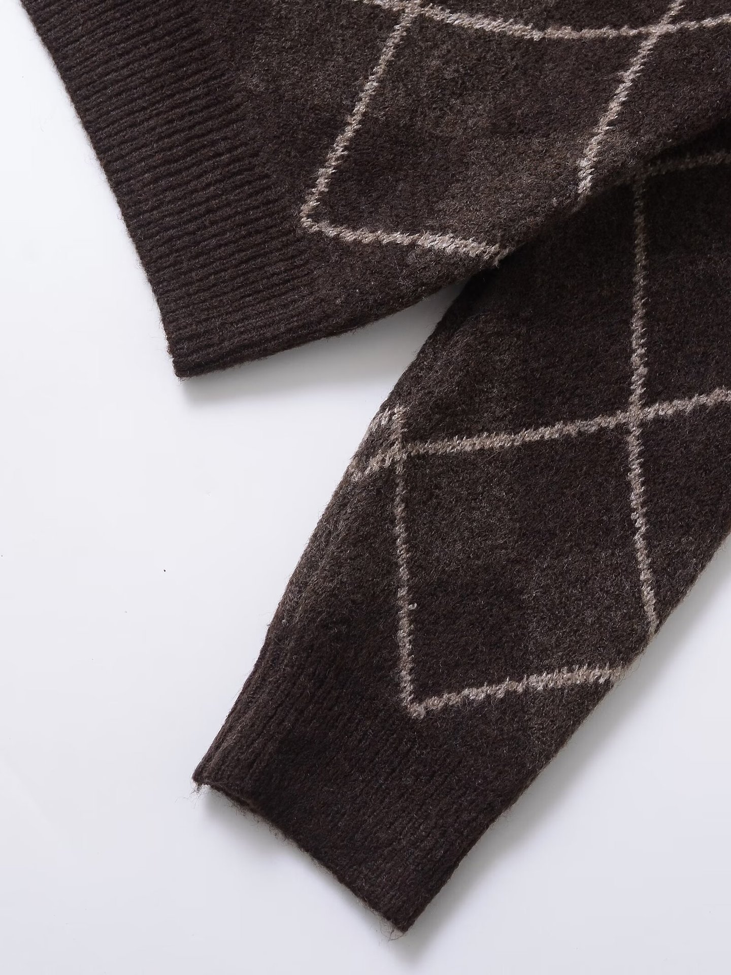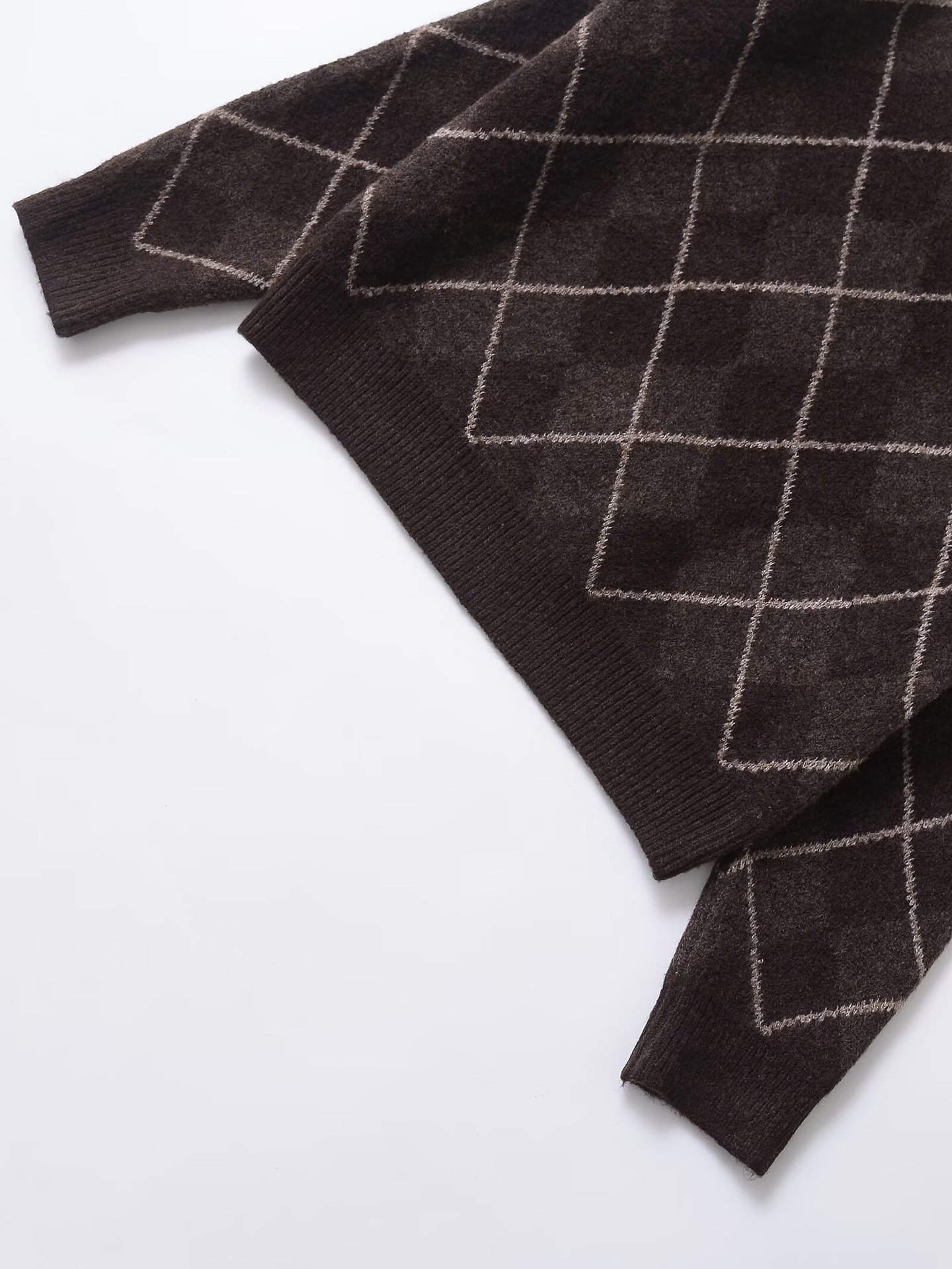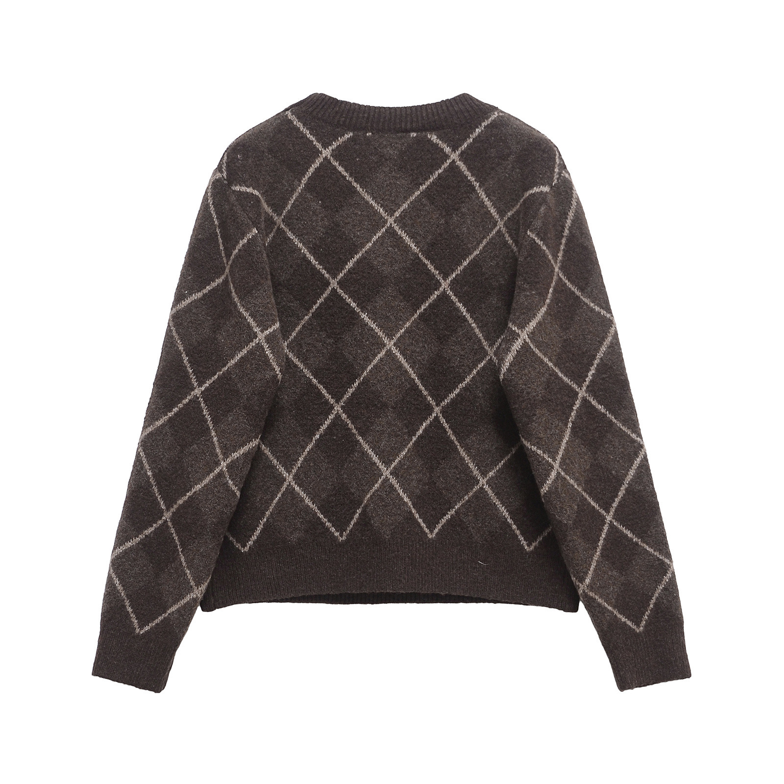 봄 2025 새로운 유럽과 미국의 국경 여성 거리 패션 라운드 넥 탑 다이아몬드 니트 스웨터 w 08 947스토어 가기