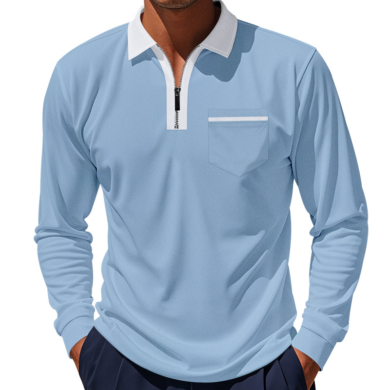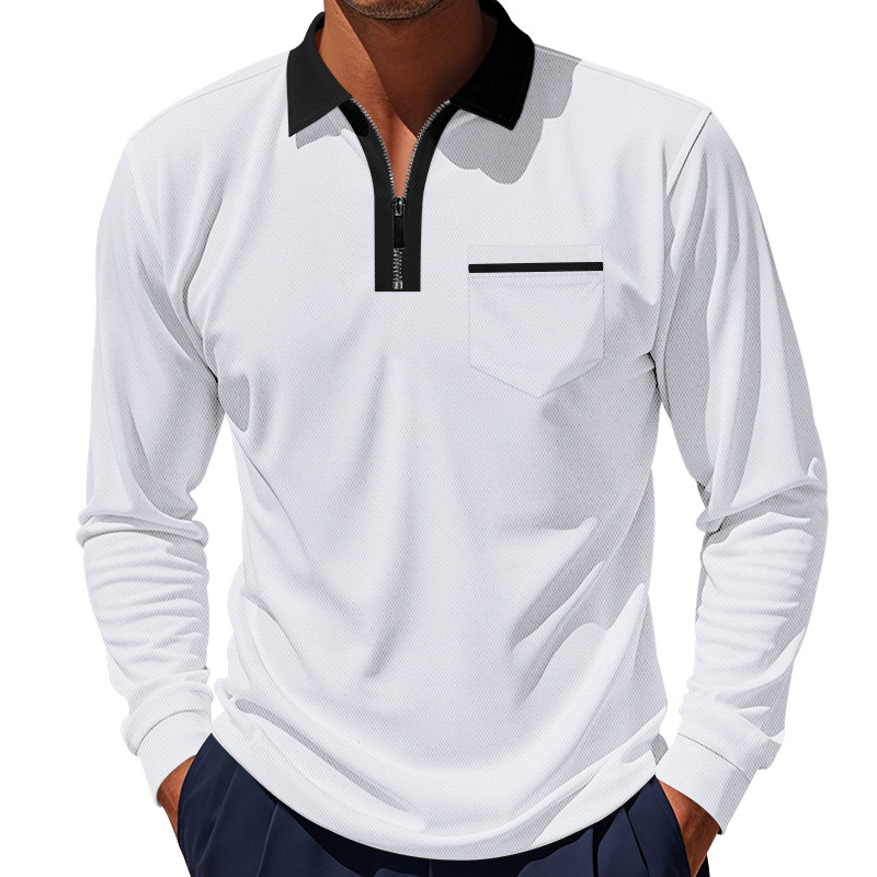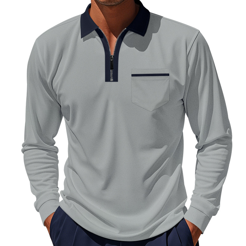 국경 간 봄 클래식 영국 스타일 폴로 세트 지퍼 빠른 건조 통기성 폴로 셔츠 긴팔 골프 남성 티셔츠