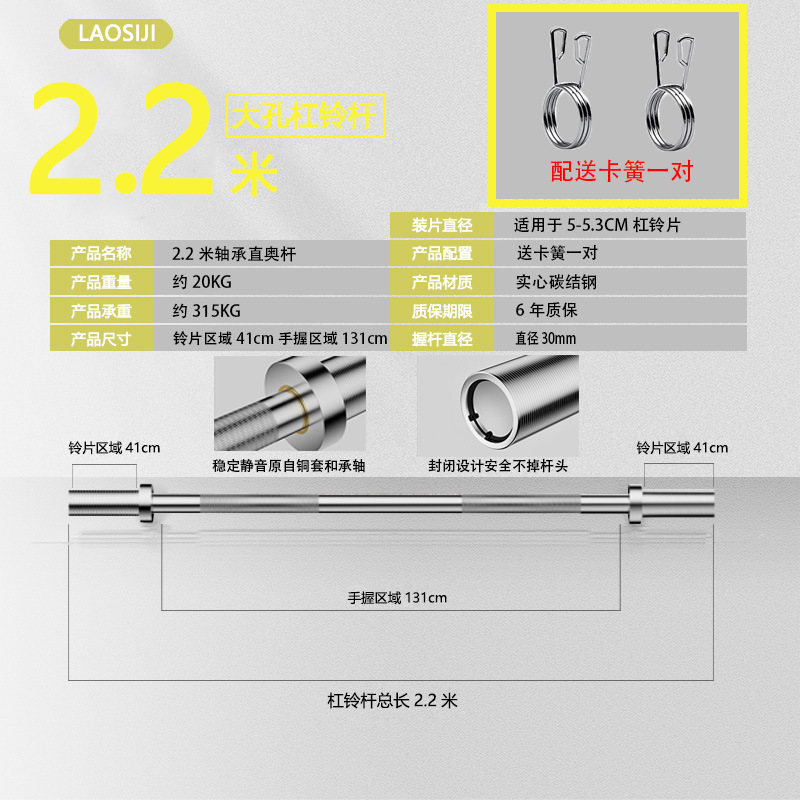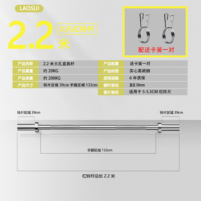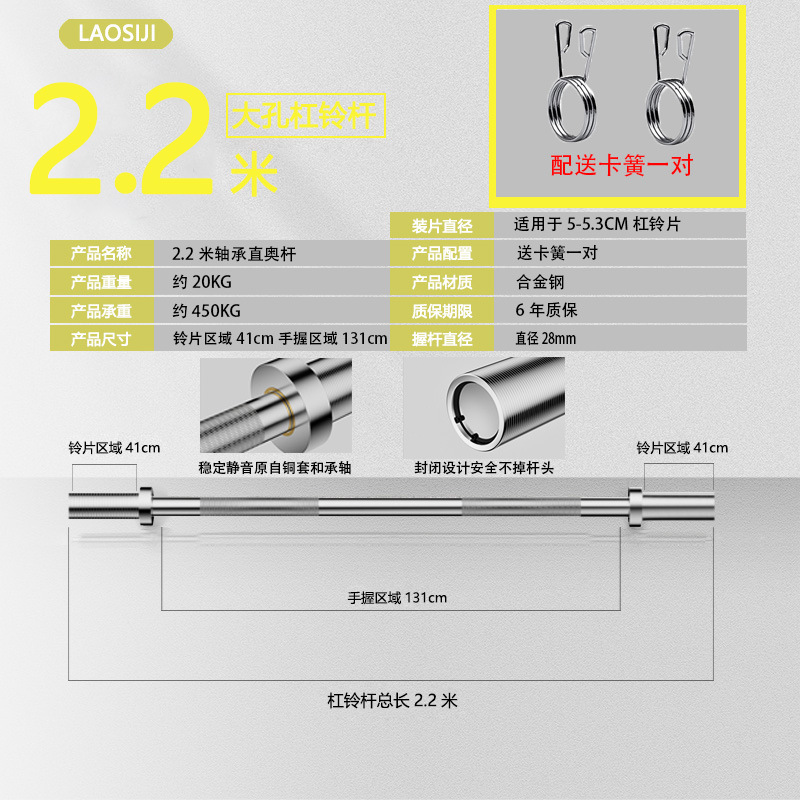 • 견고한 합금강 2.2m 직선 오스트리아 로드 8개 베어링 5cm 대형 구멍에는 한 쌍의 서클립이 함께 제공됩니다.