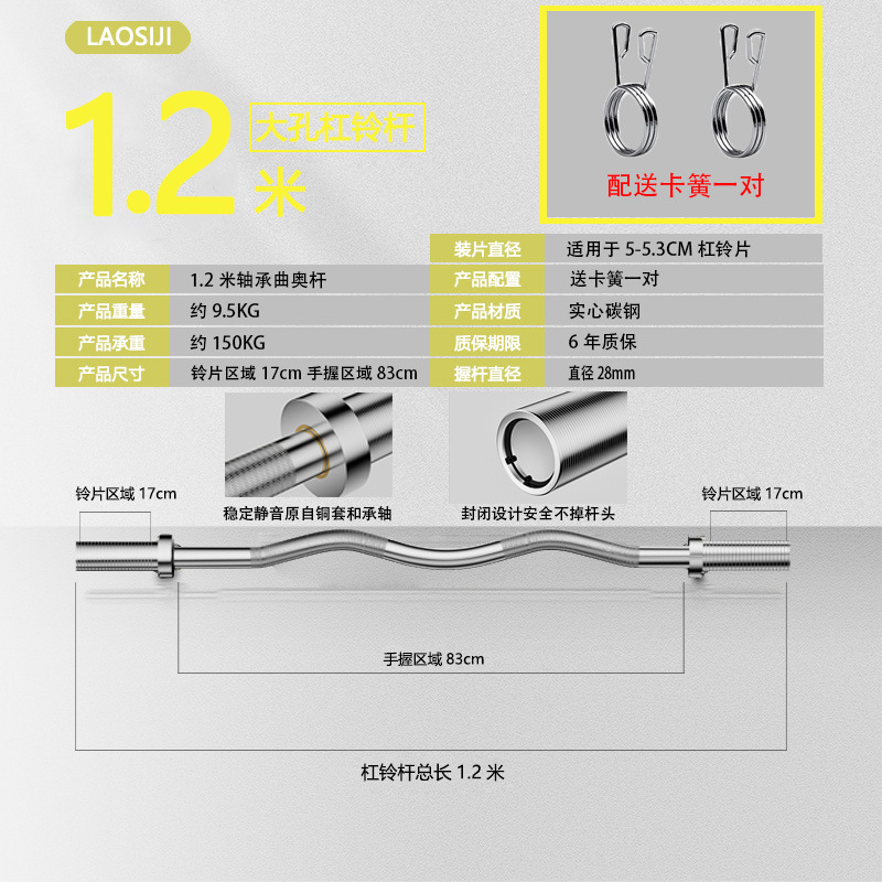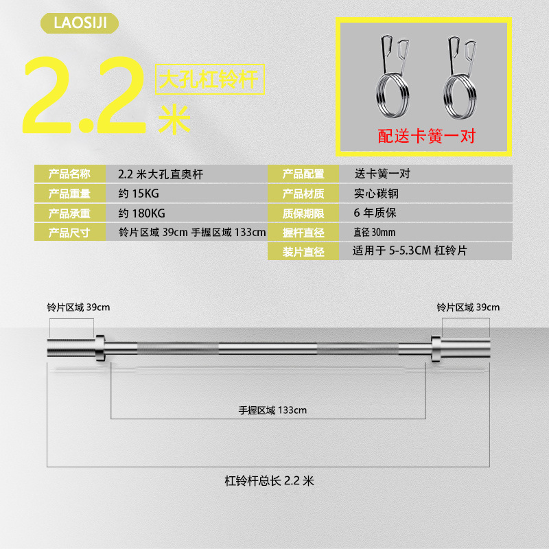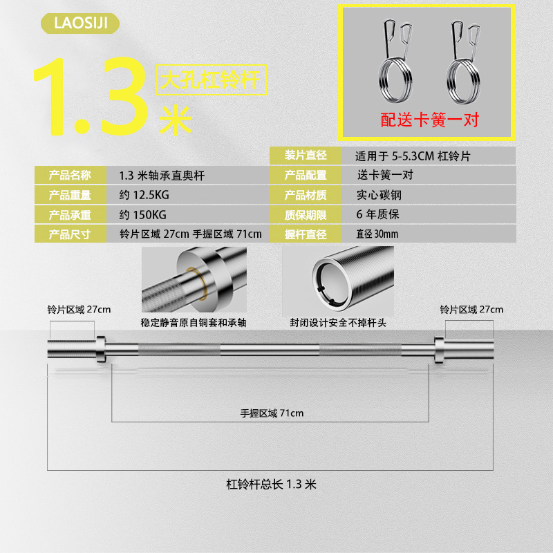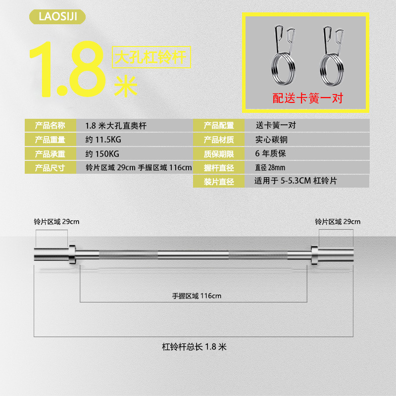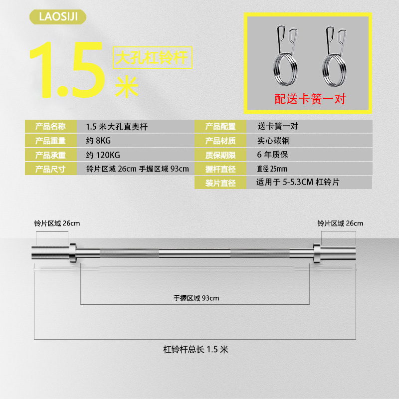 • 견고한 탄소강 1.5m Qu Ao 막대 5cm 큰 구멍에는 한 쌍의 서클립이 함께 제공됩니다.
