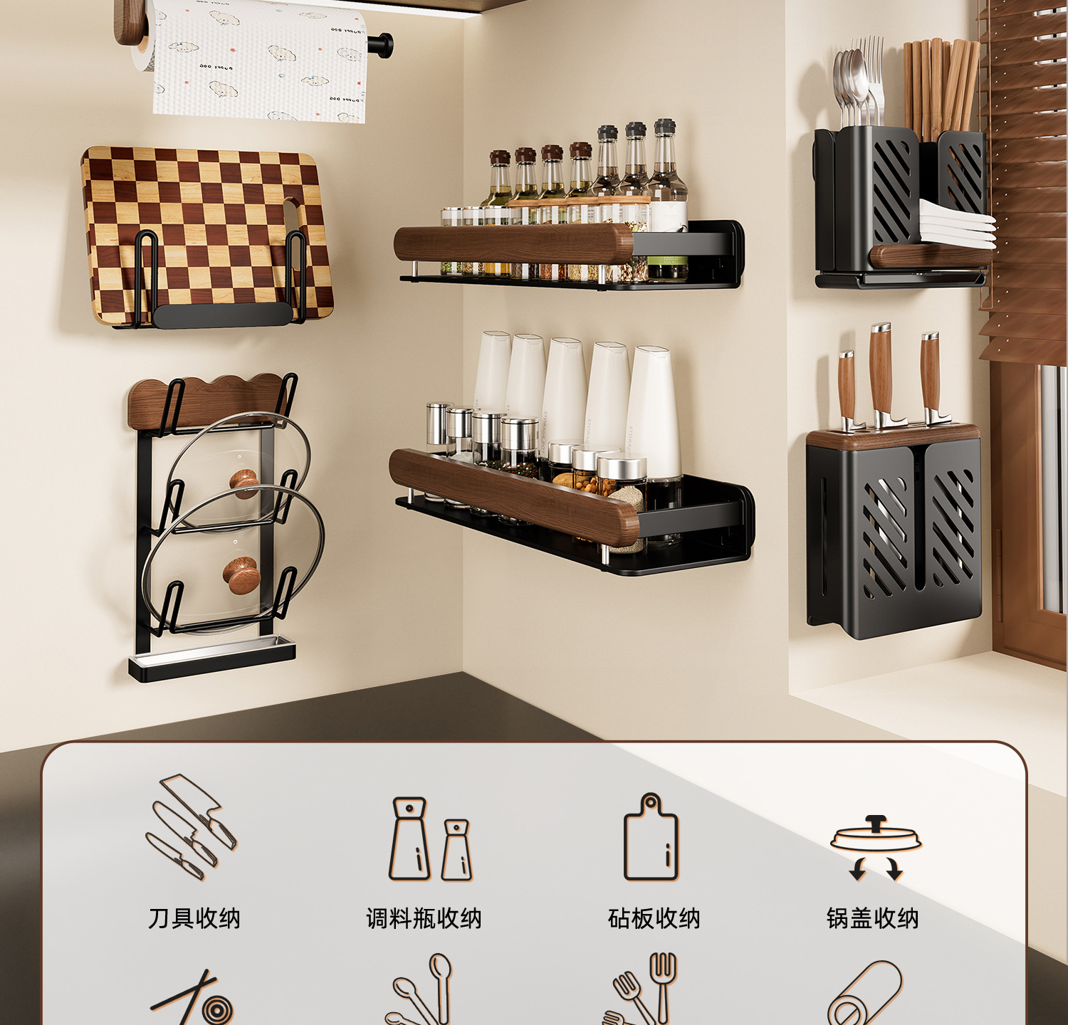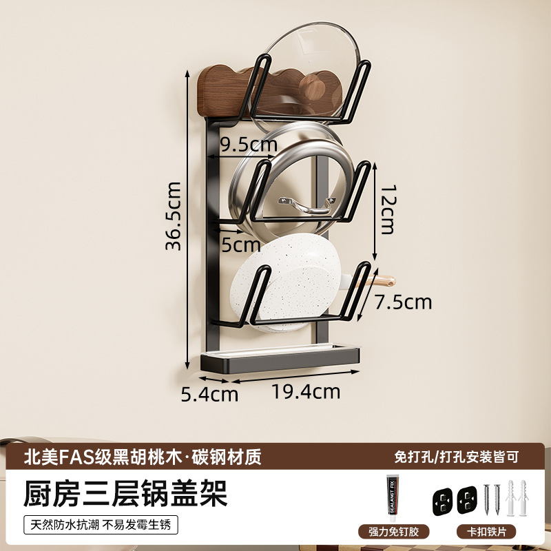 주방 보관 랙 호두 벽걸이 형 조미료 다기능 벽 펀치가없는 냄비 뚜껑 보관 랙
