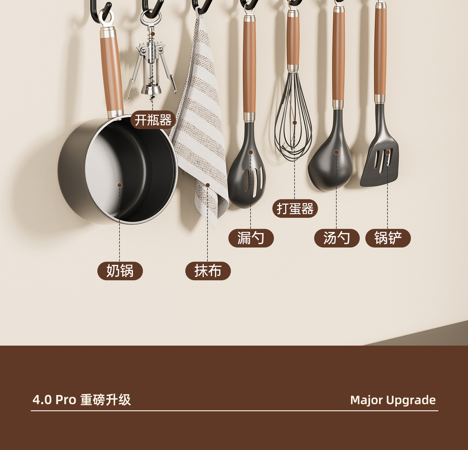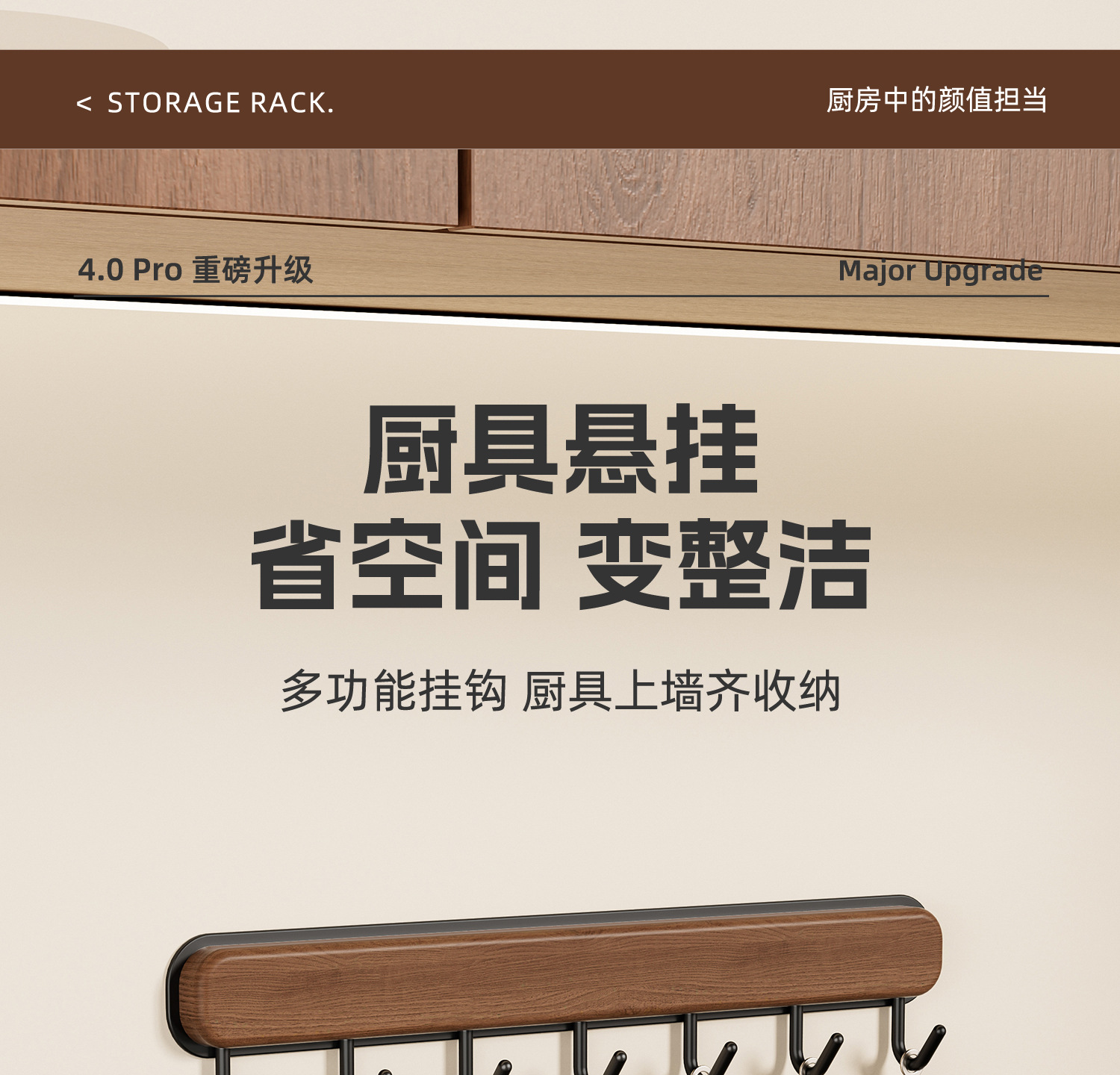 • 블랙월넛 | 대형 U자형 냄비뚜껑걸이 [구멍을 뚫을 필요가 없습니다]