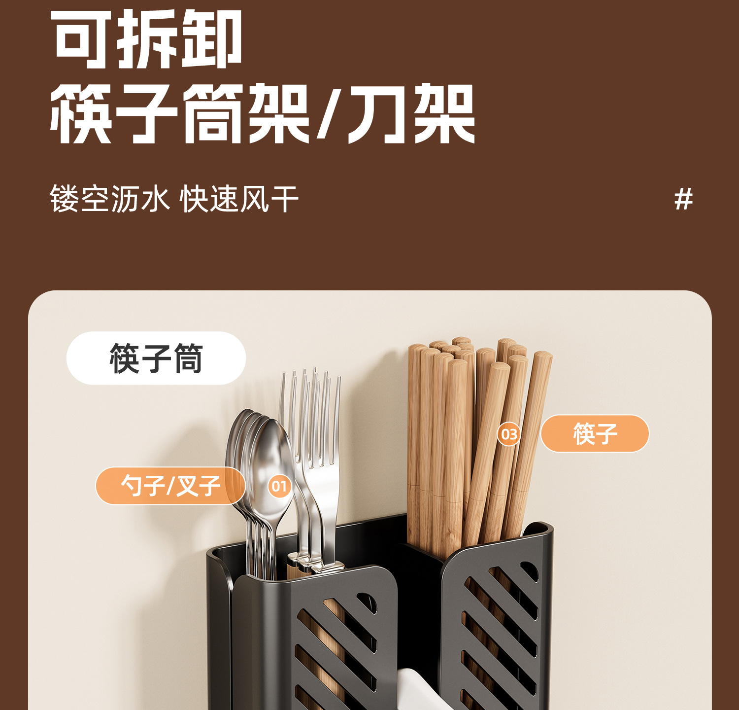 • 블랙월넛 | 젓가락통 [물빠짐 트레이 포함]