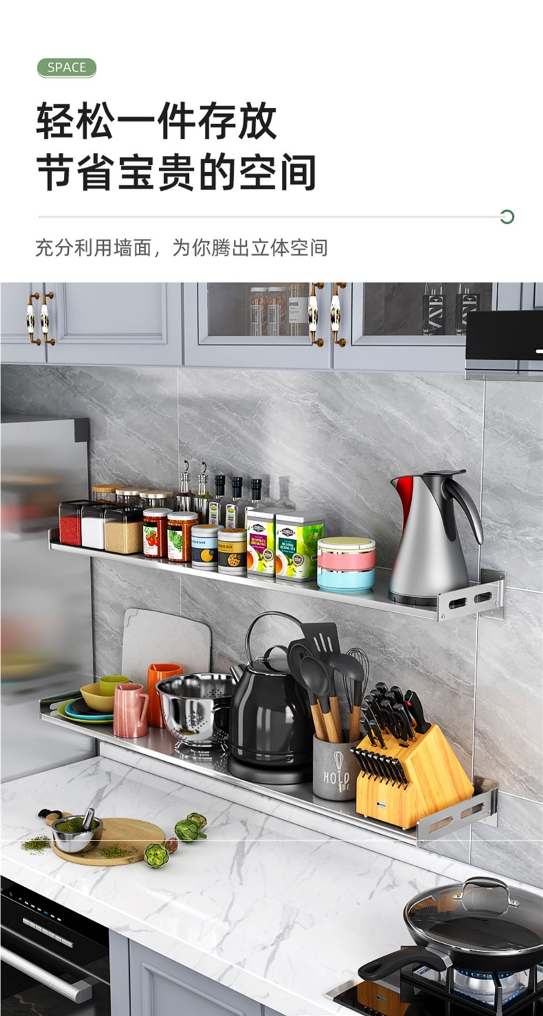 주방 보관 랙 스테인레스 스틸 벽 선반 파티션 플레이트 전자 레인지 벽 장착 펀치없는 그릇 랙 스토리지스토어 가기