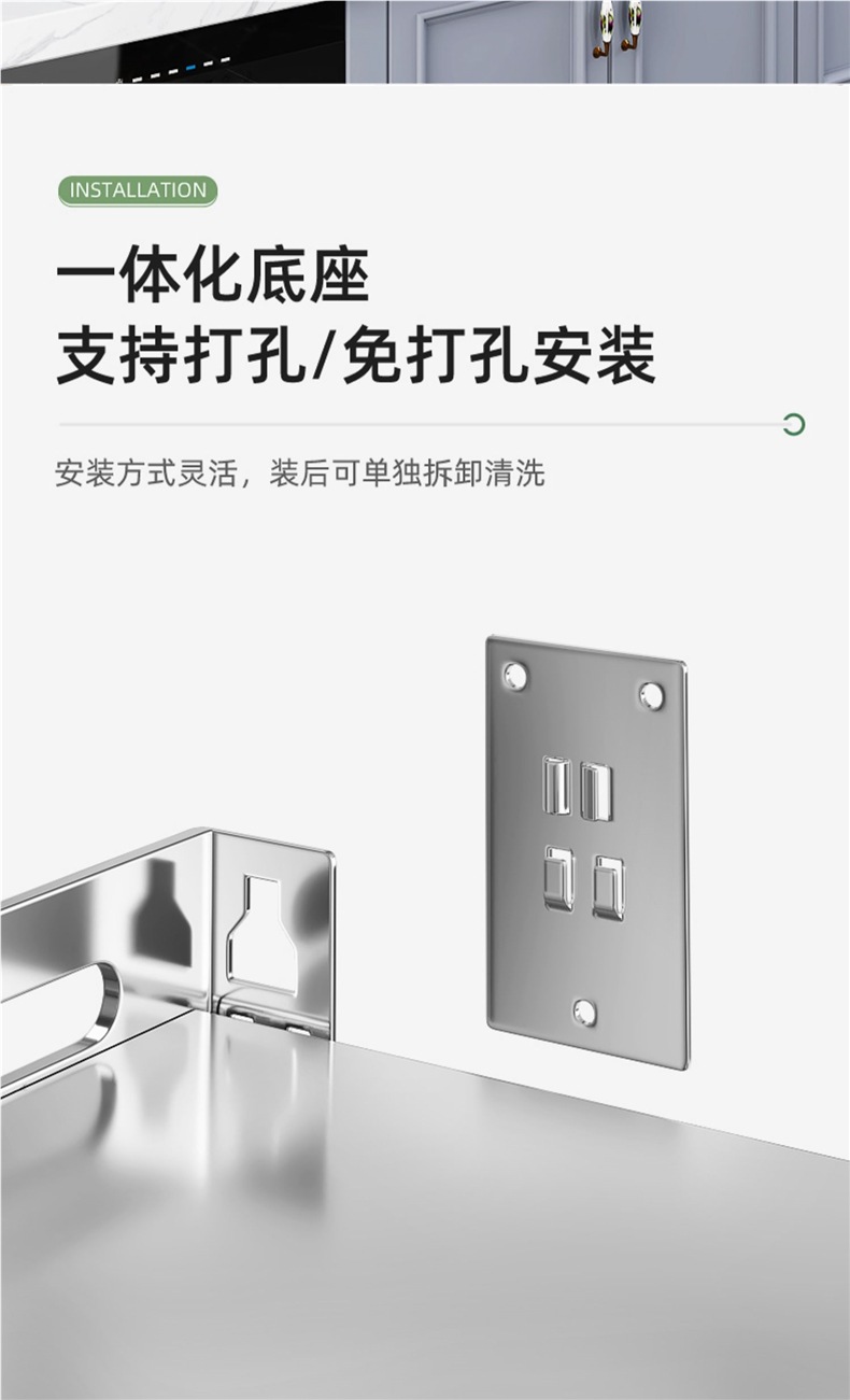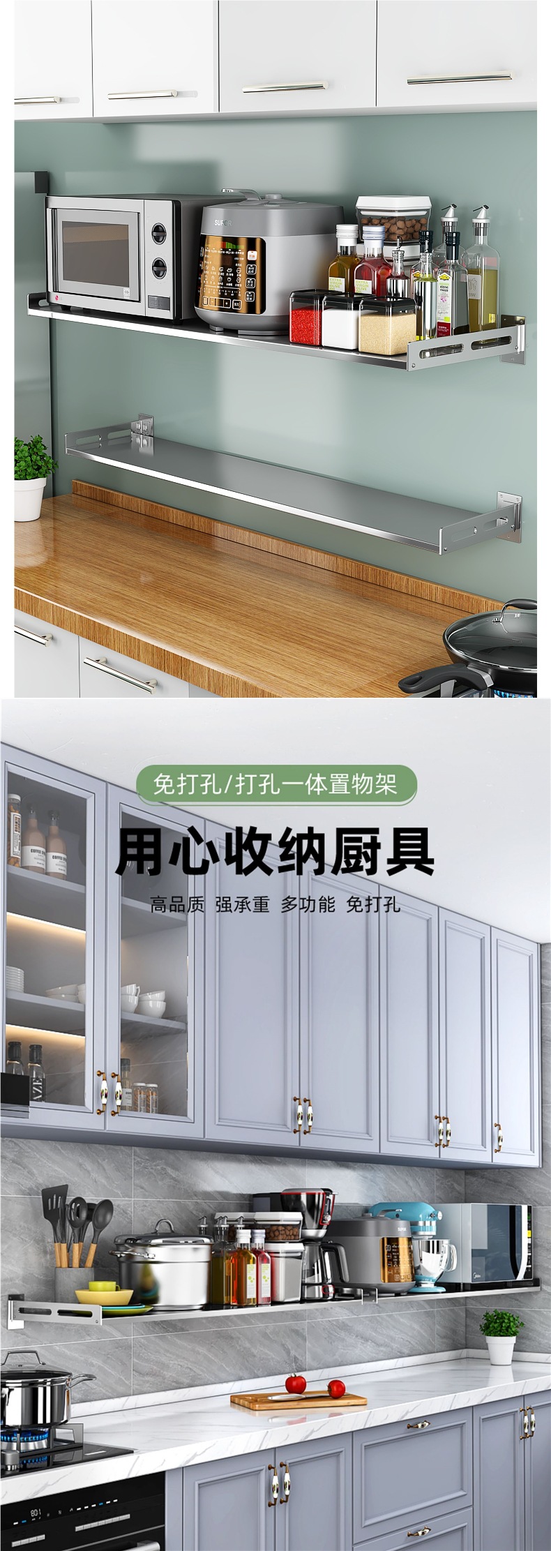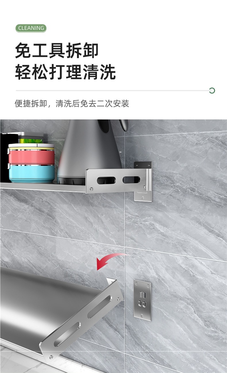 주방 보관 랙 스테인레스 스틸 벽 선반 파티션 플레이트 전자 레인지 벽 장착 펀치없는 그릇 랙 스토리지
