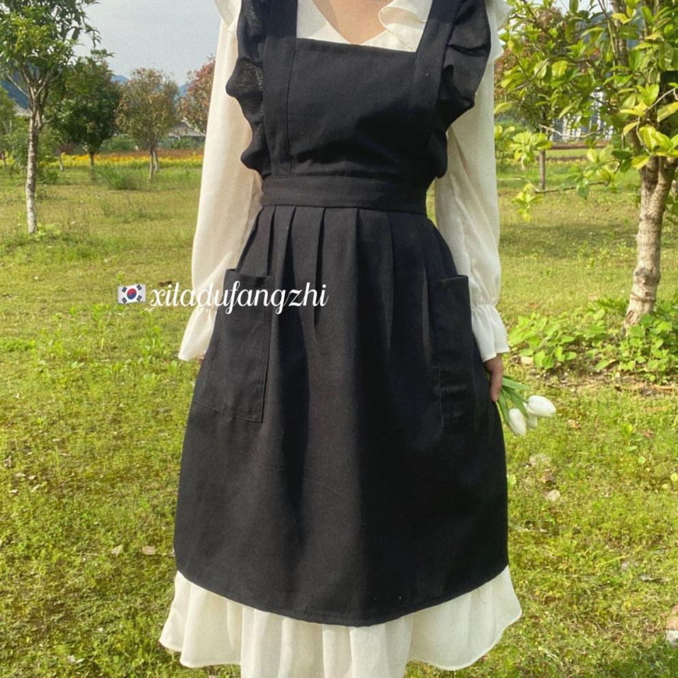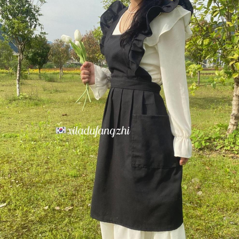 방수 작은 신선한 고급 앞치마 Ruffled 스트랩 크로스 한국 인 카페 네일 아트 샵 꽃 대외 무역스토어 가기