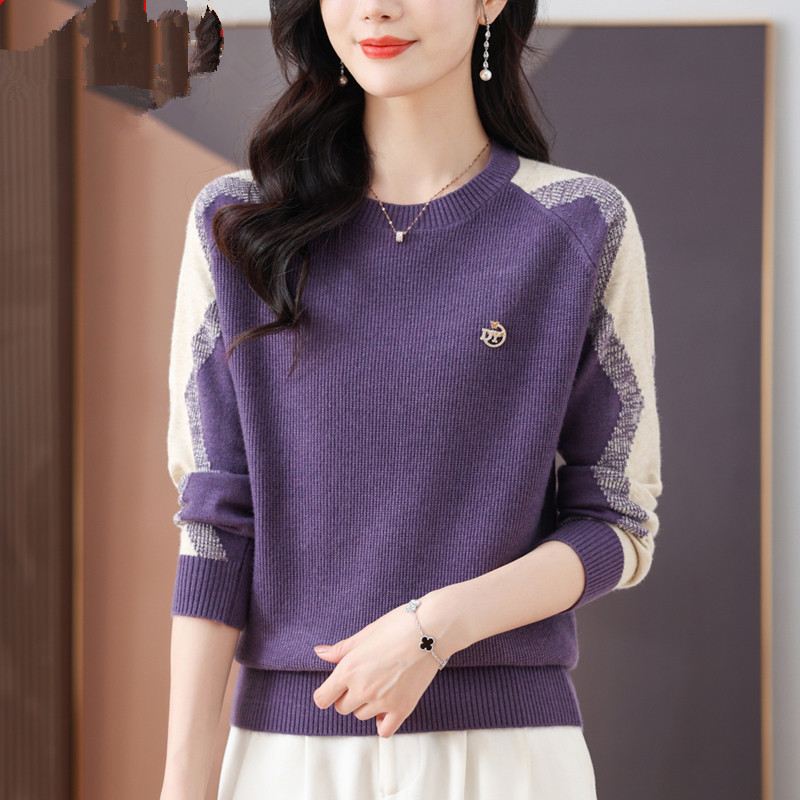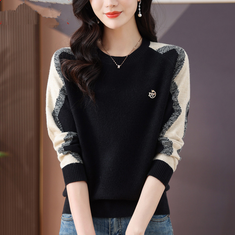 2024 년 새로운 가을과 겨울 패션 터틀넥 크루 넥 니트 스웨터 여성의 짧은 세련 된 느슨한 플러스 사이즈 탑베이스 셔츠스토어 가기